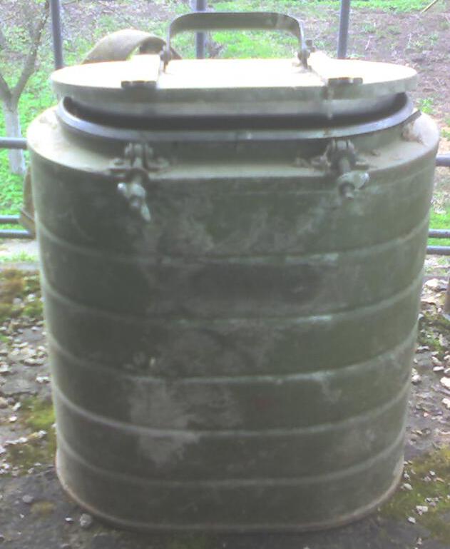 Ответ: Термос для еды Игорь, в воинских частях такого добра - валом. И стоит недорого. Меня всегда умиляла надпись на них "СТРАВА 1" и "СТРАВА 2". Напоминает слово "отрава". У меня дома валяется аналогичный девайс с войны, немческий или румунский, только дед его изуродовал, снял бак и примудрил другую крышку...