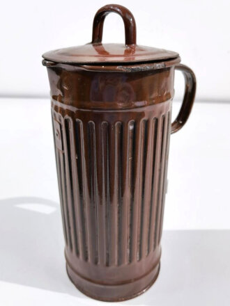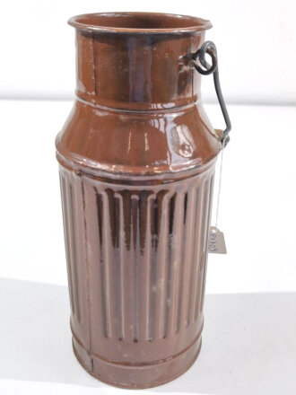 Привет. В послевоенной Германии, учитывая дефицит на всё и особенно на предметы повседневного обихода, многие предприятия переключились на переделку военного снаряжения на гражданские предметы хозбыта. Особенно этой переделке подверглись каски и противогазные баки. Этот бывший газбак из этого разряда. Есть много коллекционеров в Германии, которые собирают подобное.