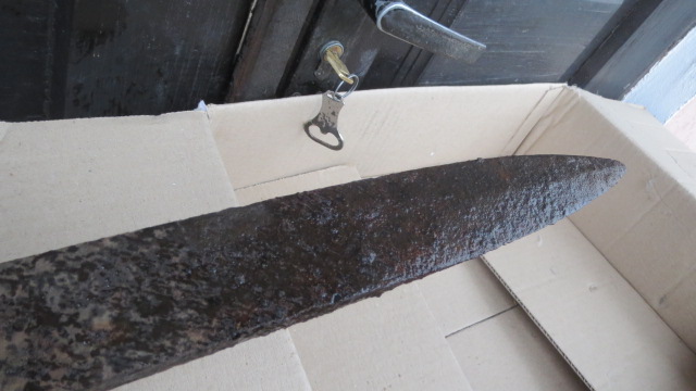 Здравствуйте уважаемые камрады! Помогите пожалуйста с определением тесака. Найден в Полтавской области. Изготовлен из стали. Длина на фото. Вес около килограмма. Спасибо! С уважением.