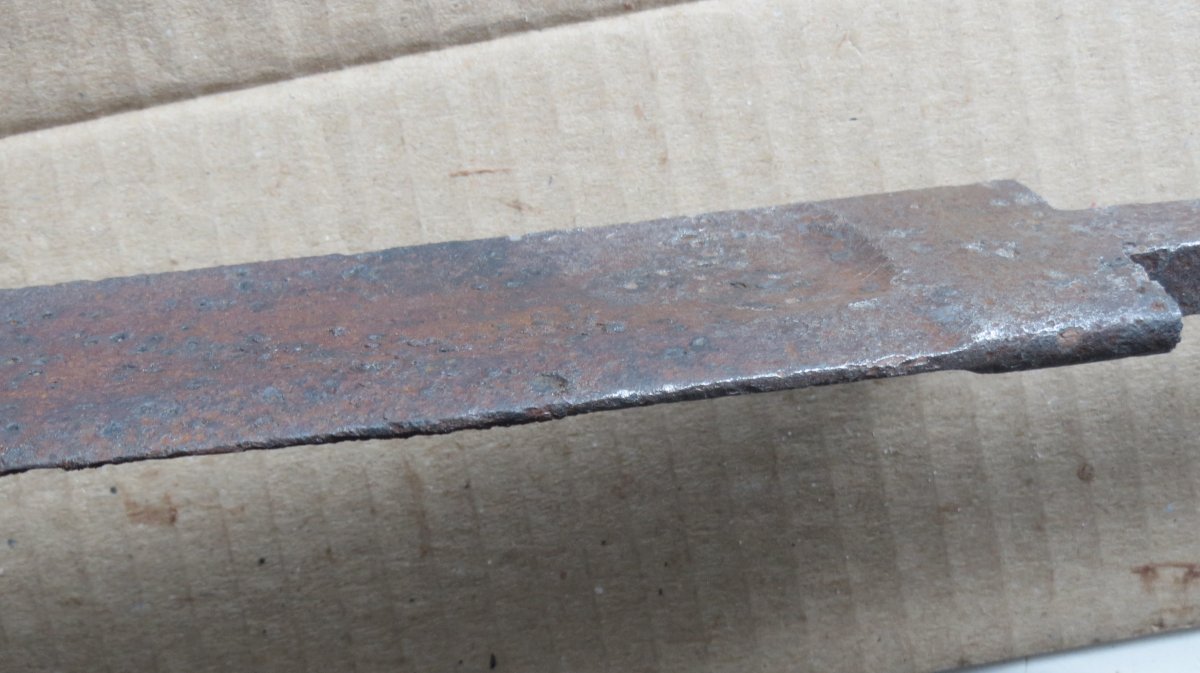 Почистил немного хвостовик, клейм не оказалось нигде. Не было времени и средств чистить правильно почистил как смог, в соде электролизом, но только заднюю часть клинка. Сегодня постараюсь выставить на торги и ссылку выложу сюда. При внимательном рассмотрении клинок не точен все грани сохранились.