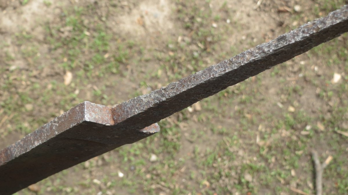 Лично мне нужно этот предмет переварить - слишком уж он неординарен (для меня). С лёту не могу его определить. Слишком много разных несостыковок. Попробую докопаться, но возможно кто-то будет быстрее. Самая главная незадача - это ширина у пяты - 4.5 см. Это и разбивает все мои догадки. Возможно в хвосиовике есть одно или два отверстия, но их не видно из-за слоя коррозии сверху.
