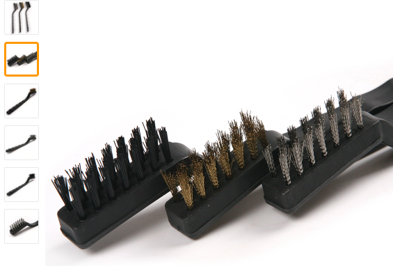 если есть желание у ТС, то можно таким образом весь клин привести в порядок, (вопрос - может не быть тары такого размера, чтоб полностью погрузить клин в керосин или масло), - тогда просто обмотать (не очень толсто) весь клин ветошью, поставить в металлическую банку с веретёнкой или керосином(оперев на что-то верхнюю часть клина, чтоб не падал) и периодически неспеша малыми порциями подливать на ветош керосин или масло, жидкость будет медленно стикать опять в банку и само по себе из банки тянуть, как материал тянет любую жидкость (эконом вариант). Периодически доставать (и повторяю если есть время, желание и условия) и если уже так глобально отнестись к вопросу, тогда щётками, которые используют в работе ювелиры, те же "зубные" щётки, только (сталь, латунь, щетина см. Фото) - они вреда никакого на принесут и для данного состояния клина, будут продуктивнее, чем зубная,,- главное, чтоб были условия всем этим заниматься. ------------------------------------------------------------------------------------------------------------------------