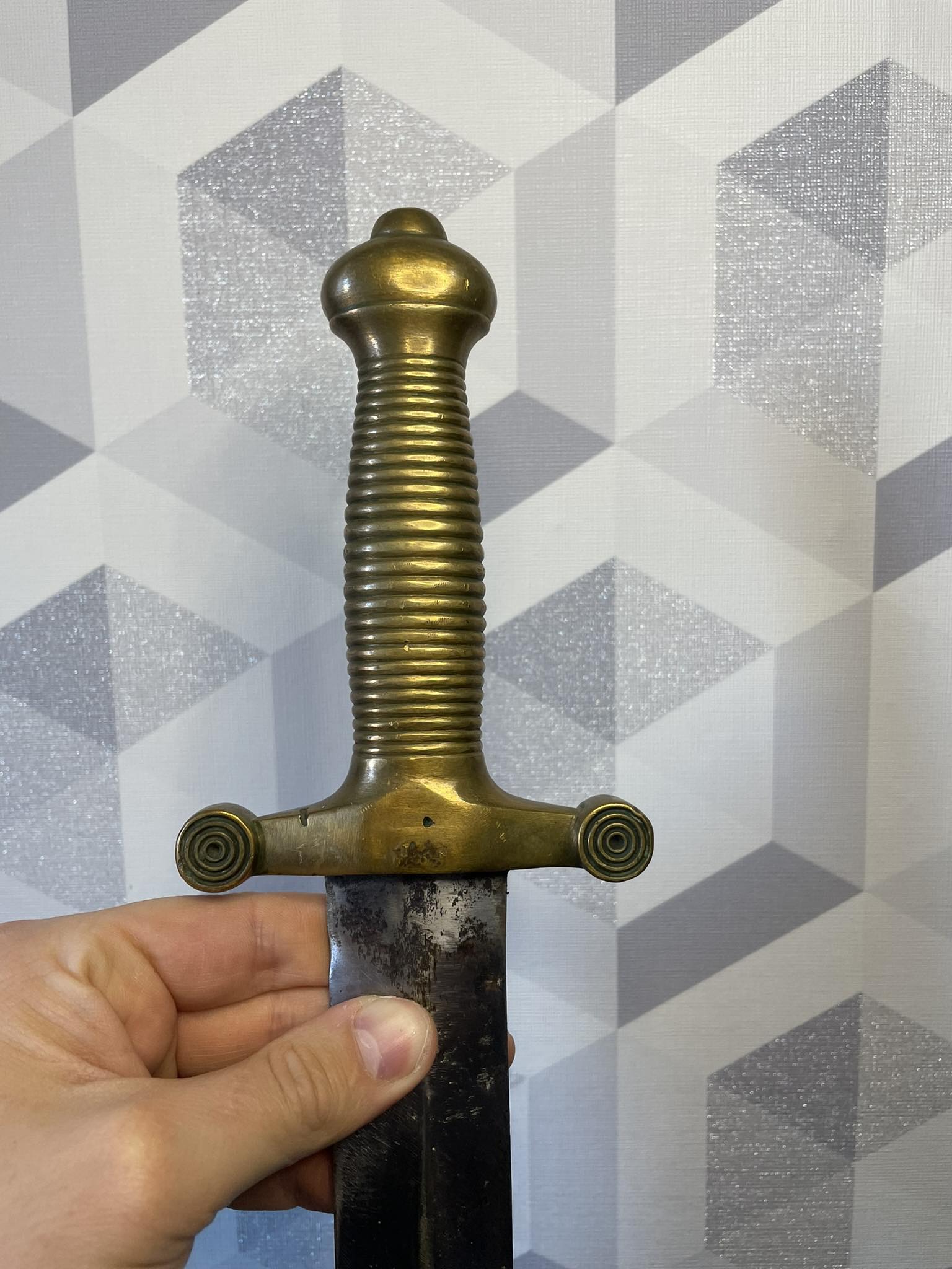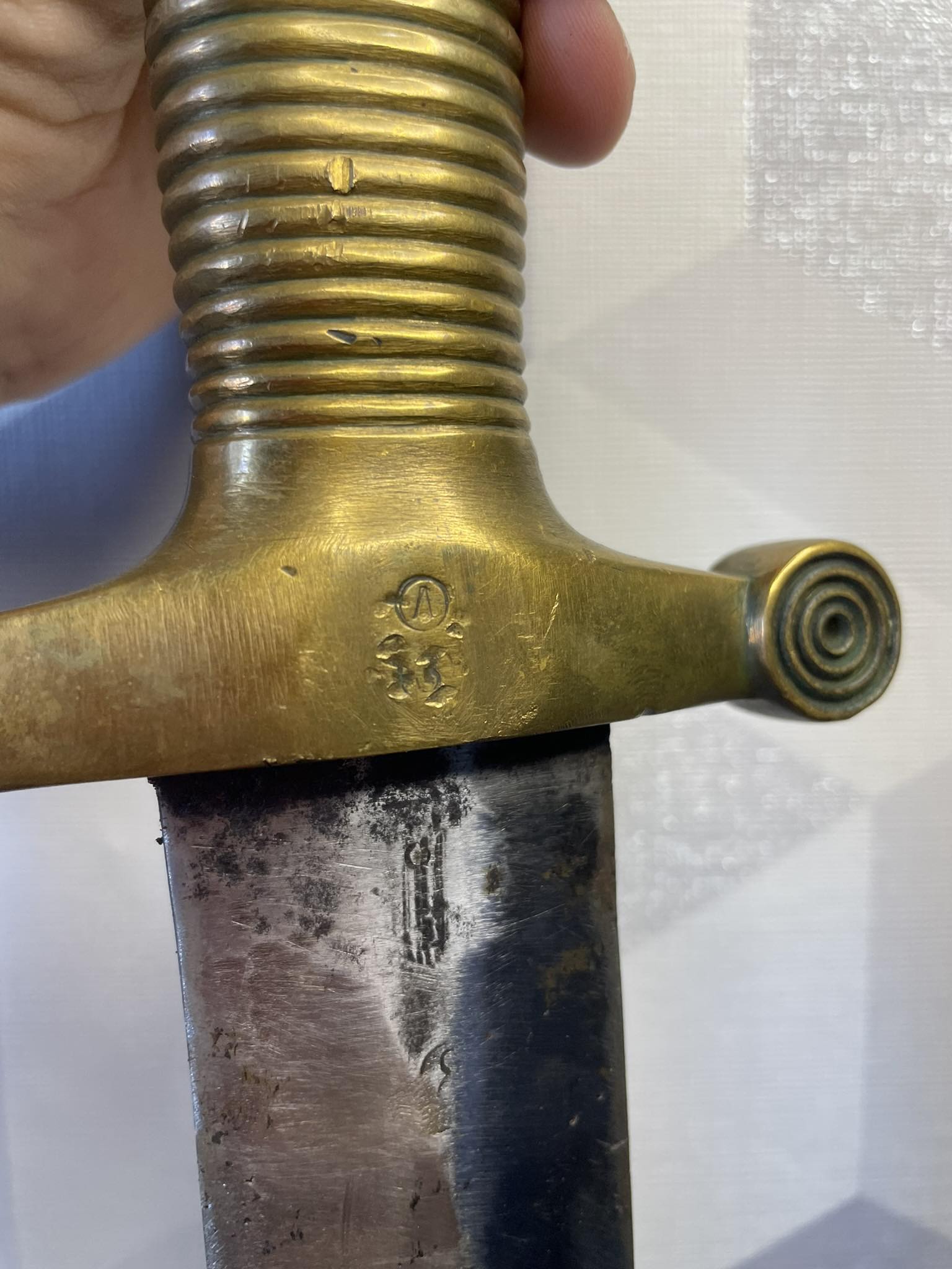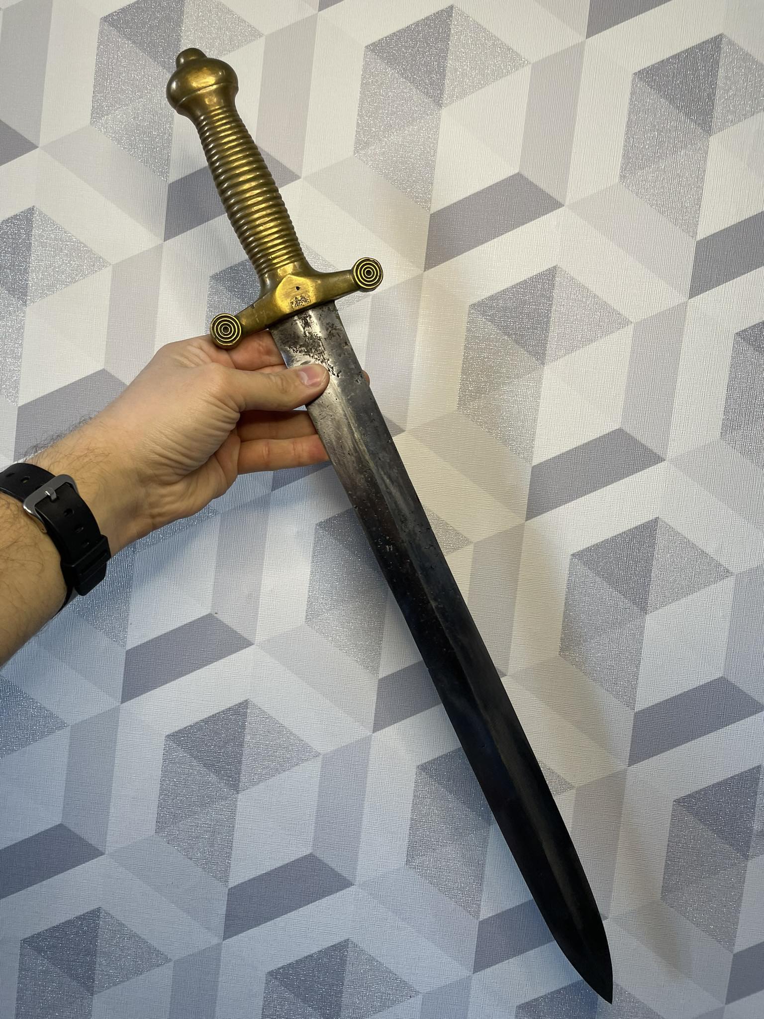 Мне видится тесак пехотный для нижних чинов РИА образца 1848 г. Прототипом его являлся тесак французский образца 1831г. С оригинальностью всё не так просто и поэтому выставлять его на обсуждение надо в профильном разделе "Холодное оружие".