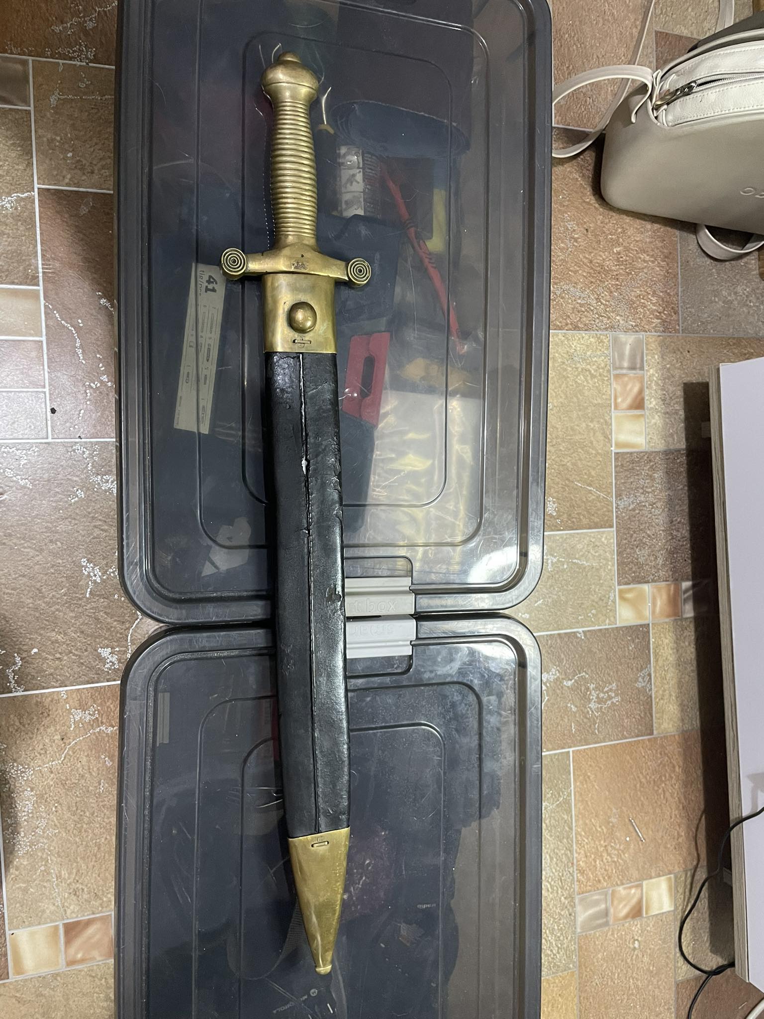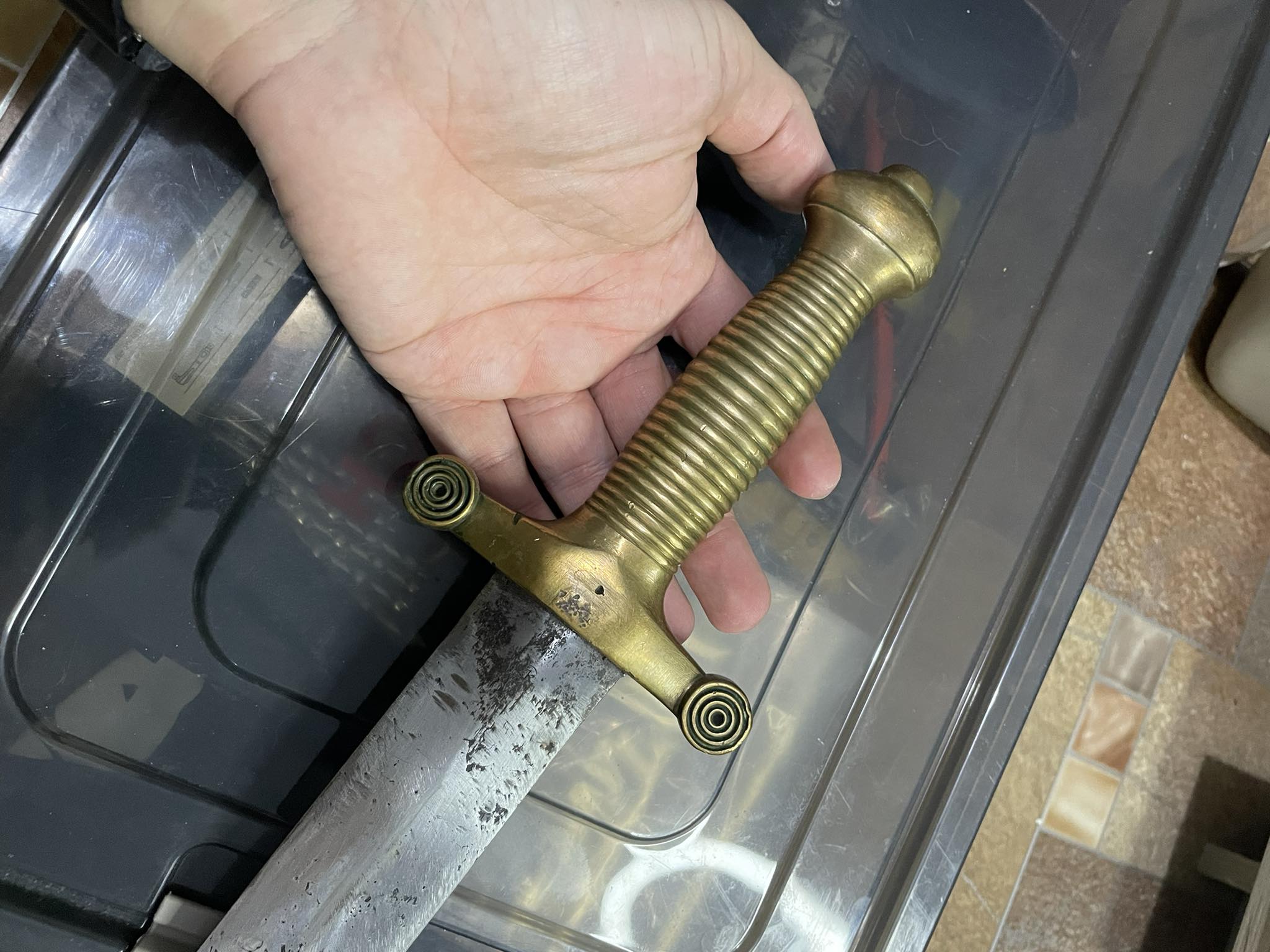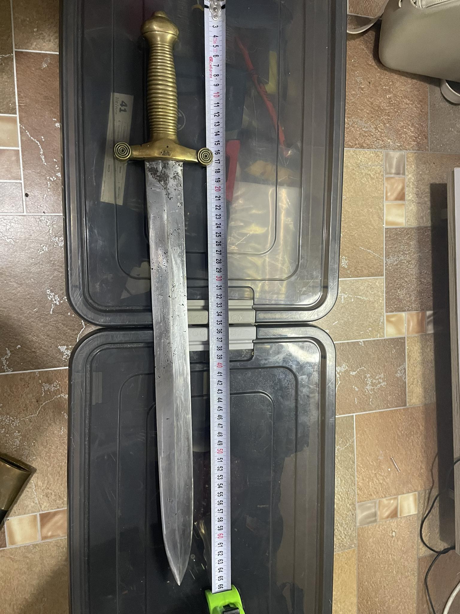 Мне видится тесак пехотный для нижних чинов РИА образца 1848 г. Прототипом его являлся тесак французский образца 1831г. С оригинальностью всё не так просто и поэтому выставлять его на обсуждение надо в профильном разделе "Холодное оружие".