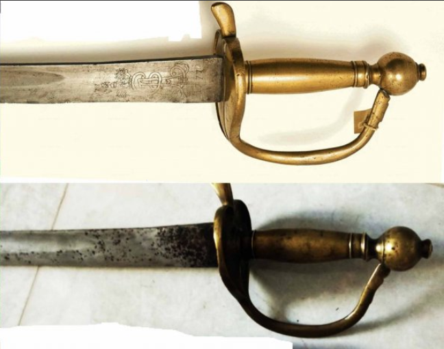 С эфесом всё понятно, не ясно с клинком. Сделайте снимки клинка ближе к эфесу, с обеих сторон. Вот так.