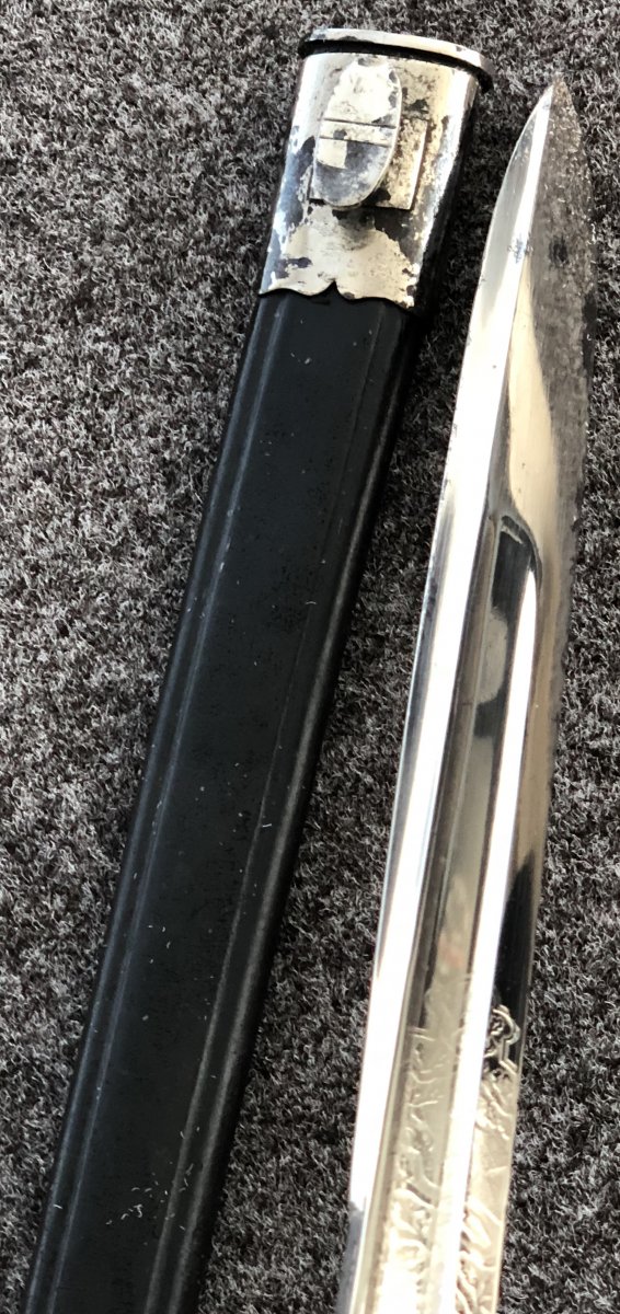 Это-то понятно,,,,-, вопрос стоит не в подлинности штыка (с ним всё без вопросов),,- а в травлении на клинке. А то получается на парадниках и хиршах ВМВ "на деревьях листья считаем" и о геометрию букв глаза ломаем,,,- а здесь цена вопроса в пять раз дороже и по редкости "стрелка почти на красном лежит", и как-бы интереса не наблюдается. Думаю Вам, как обладателю сего предмета и будет задание идентифицировать подлинность изображения, а нам потом поведаете, всё ли в порядке