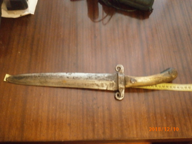 Доброго дня камради. Попався такий собі чи то тесак, чи то меч На гарді проглядуються якісь цифри. Ручка -з кістки чи рогу. Можливо це з чогось перероблений тесак? Мабуть є ХЗ і на продаж його виставляти не можна? Дякую за відповіді, з повагою, Іван