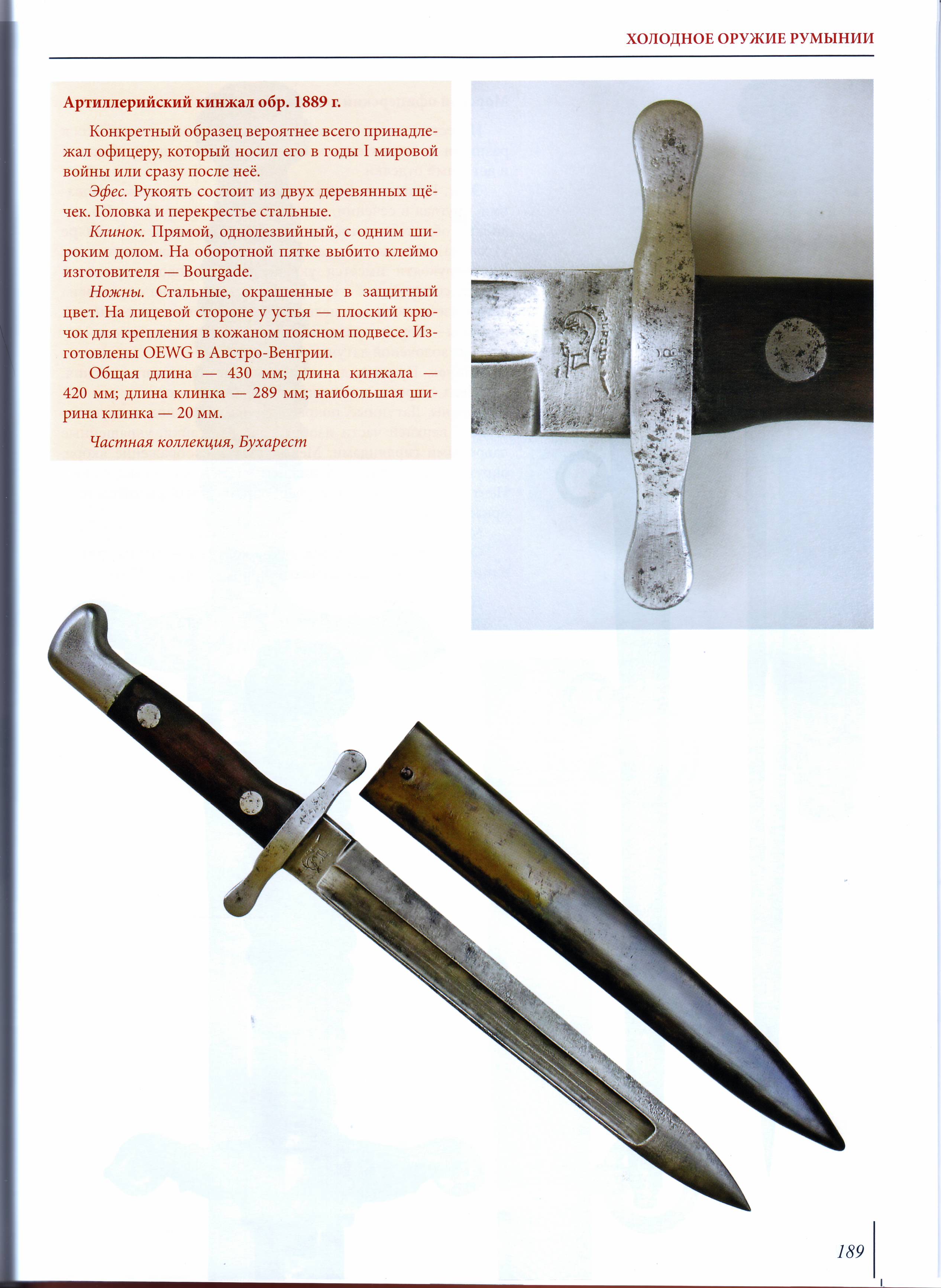 Ja polucal takuju informaciu ot ruminskovo kollektora neskolko let nazad, sto etot pokazanij M1889 javno net, poka to byl drugoj tesak-styk, kotorovo zdelali dlja vintovky, imejet drugoj klinok i nozny. M1892 ili kak jevo zovut ? v Ruminii byl zdelan takze Ars.Arm v Targoviste i drugimi proizvoditeljami vo Francii v toku pervoj vojny, i skazu tak naprimer u germancov Delostrelci eto javno v bolsem kolicestve Unterofficery, poka ne dlja obycnich polevych soldatov rabotat s optikoj i stavit projektili, i sochranit komplexnoje oruzje. Poka imejete originalnoj manual dlja prijatia v ruminskoj armii, ja by takze sto to poucil sebja. Pokazite originalnoje nazvanie. Predpolozitelno ja polucal i potverzdenie etovo mnenia ot Branka Bogdanovica, znakomovo istorika i kollektora balkanskovo oruzja po analogii jugoslovanskovo art. tesaka dlja Unterofficerov M1924.