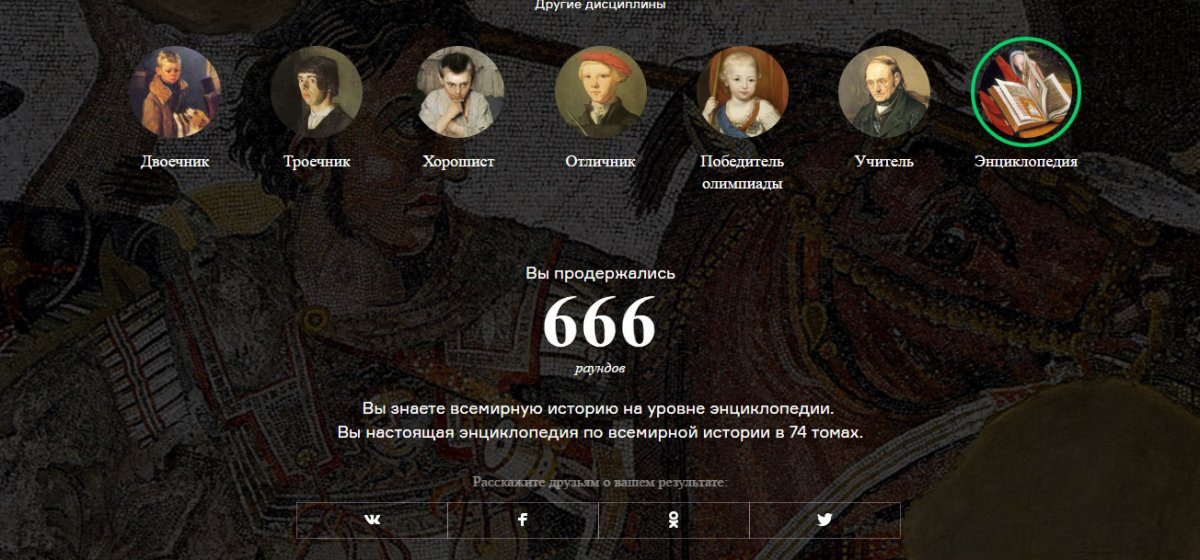 А мне больше всего понравился вопрос по Адику ! В каком году почил ?!... А ещё скокмо лет длилась СТо летняя война !!...а ну отгадайте ..