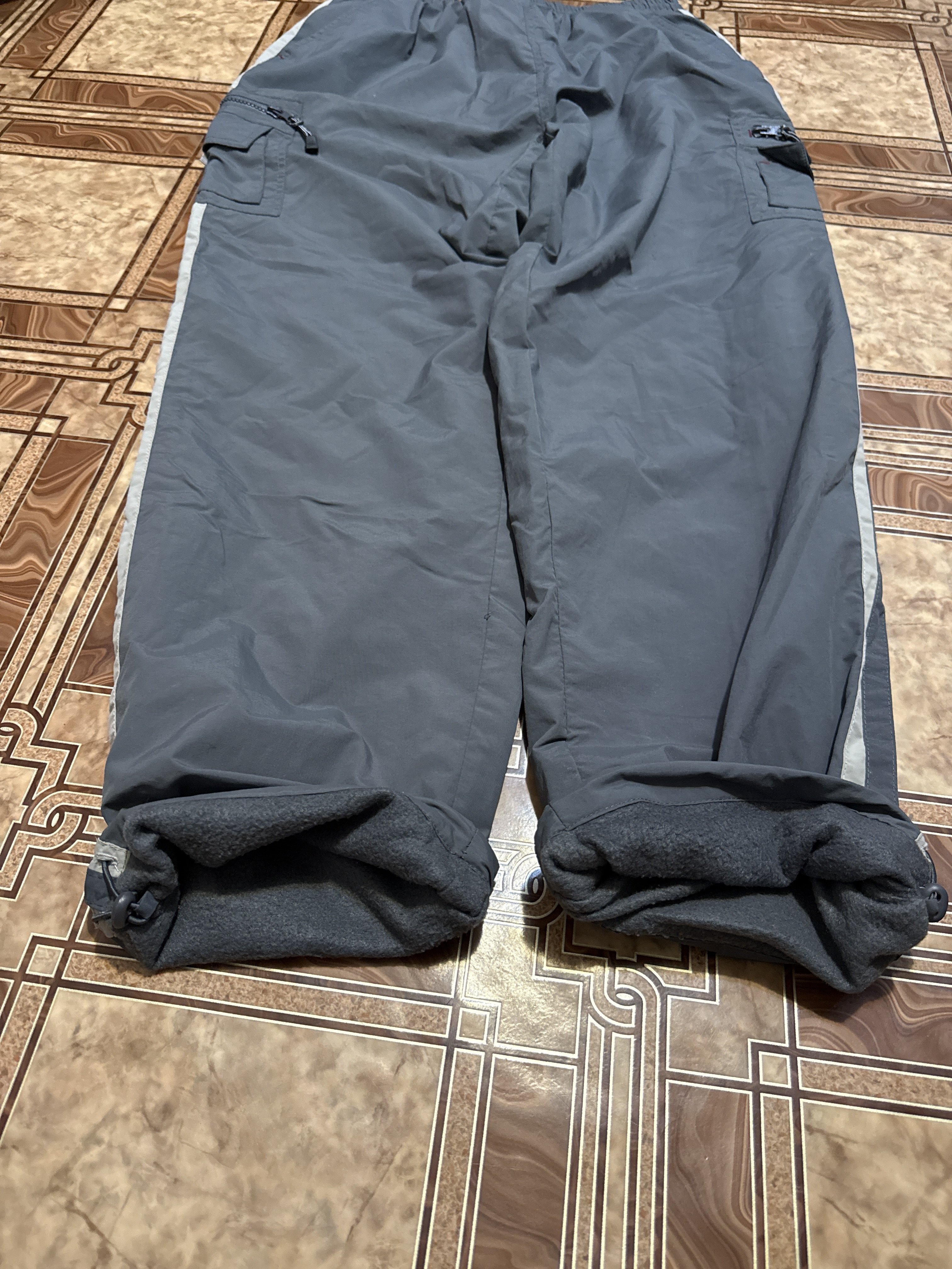 Тёплые штаны Размер по бирке XL+смотреть замеры Штаны имеют внутри утепляющию подкладку Флис, сверху два прорезных кармана,и 4-ре кармана по бокам на молнии 2-ва,и 2-ва на липучке.по низу на выходе утяжки резинки,пояс манжет резинку+шнурок утяжку. Состояние:Новое(Без запаха) Минуса Карман(Подкладку нужно подшить) и есть микро-дырочка смотреть по фото. Для Рыбалки,Работы или по хозяйству использовать отличный вариант. Отправка Укр/Новая почта Пояс-35-53см Нар/Внутр шов-109/76см Посадка спереди-36см Бёдра пол объём-59см Цена:300гр
