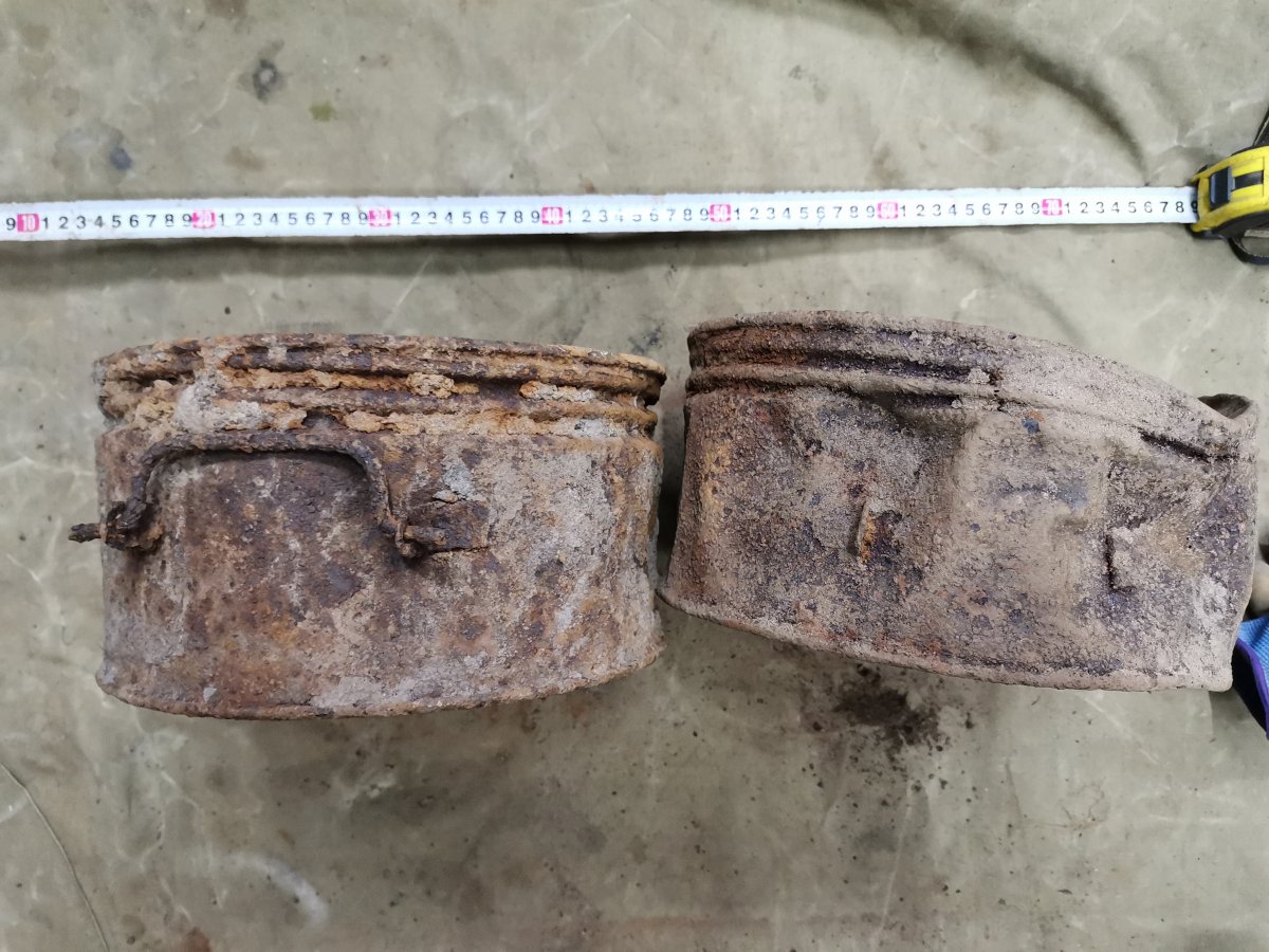 Попались на рембате по концу войны и ранней послевойне такие вот банки. В теме https://reibert.info/threads/neopoznannye-detali-s-rembatovskix-jam-na-opredelenie.1083624/page-8 определились что первые две это ТМ-41 потом попалась третья вроде тоже 41я но какая то не такая, модификация? или это ТМ-44? (хотя по описанию она больше 41й) Также рядом с третей ТМкой попалась нечто похожее на банку колотухи переростка, шо за оно? (фото 3-8 справа)