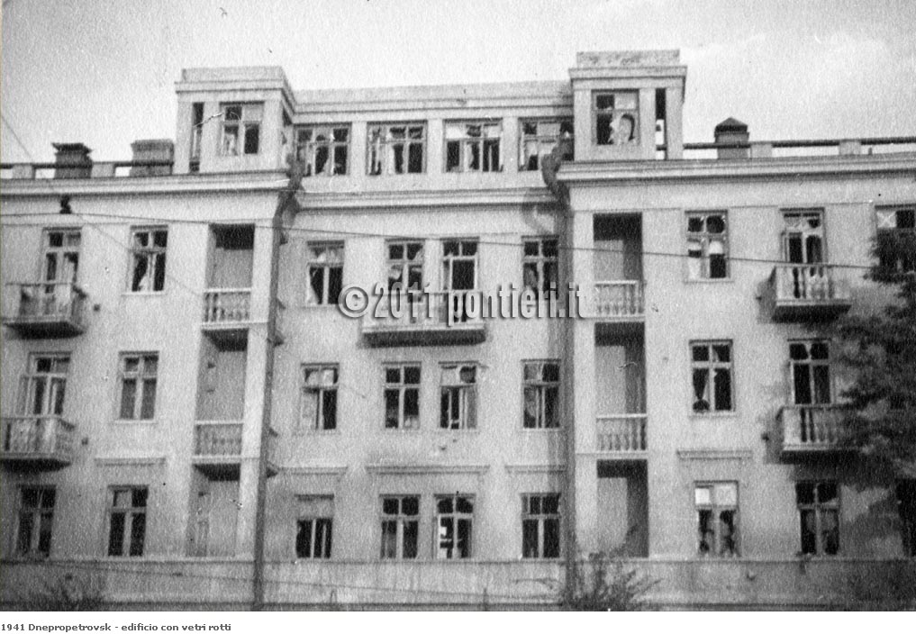 Днепропетровск 1. Улица в центре города. 2. Дом с выбитыми стеклами. Фото из альбомов итальянских понтонеров.
