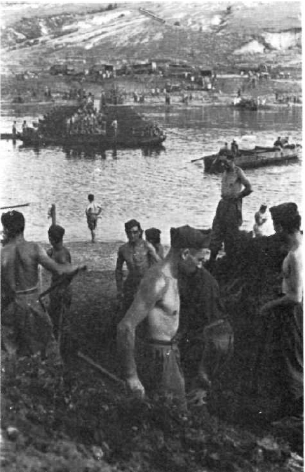 Вот фото, которое можно точно датировать, что это первые числа августа 1942 года. Здесь мы видим движение по мосту №1, а за мостом начинается строиться свайный мост им генерала Итало Гарибольди.