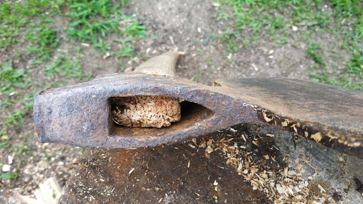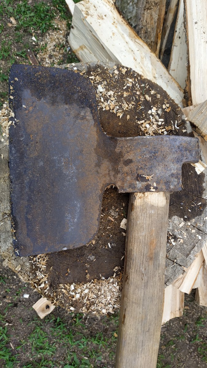 Вместе с топором было найдено что-то из холодняка немецкого, человек который нашел его, говорит какой-то кинжал в ножнах )) и отнёс скупщику на рынок продал... Топор принёс мне )