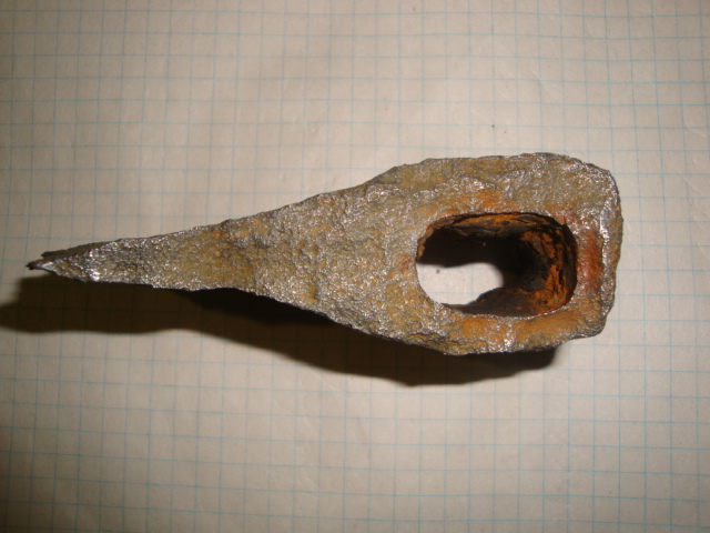 Лично я его прокислотил,потому что был один сплошной какалик с непонятным очертанием или молотка или зубила или топора.Видно что при изготовлении сильно не старались,одно стенка толще другой и на обухе сильный расклёп.???????