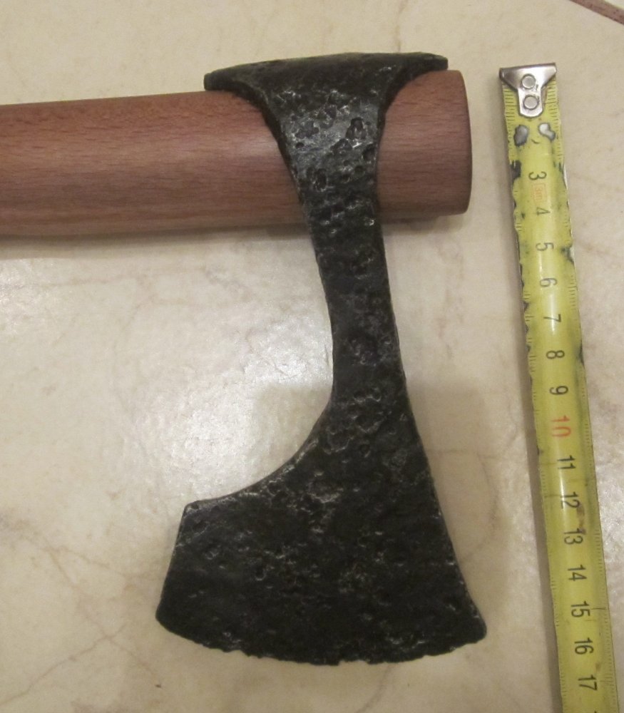 Приветствую. Мастерил для себя топорик был уверен что боевой Киевской Руси но когда примостырил древко засомневался. Подскажите к каким топорам относиться к боевым универсальным или трудяга. Если можно уточнить примерно к каким годам относиться. Вес метала 622 грамм. С ув.