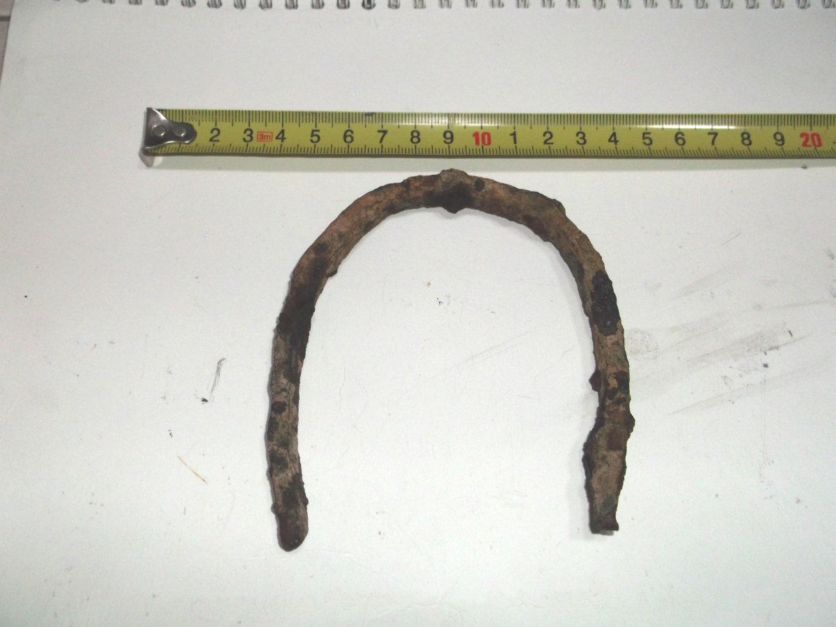 Здравствуйте. На последнем фото медное обручальное кольцо 19 - нач. 20 веков. Цена чисто историческая. После топора конская подкова 16 - 17 веков.