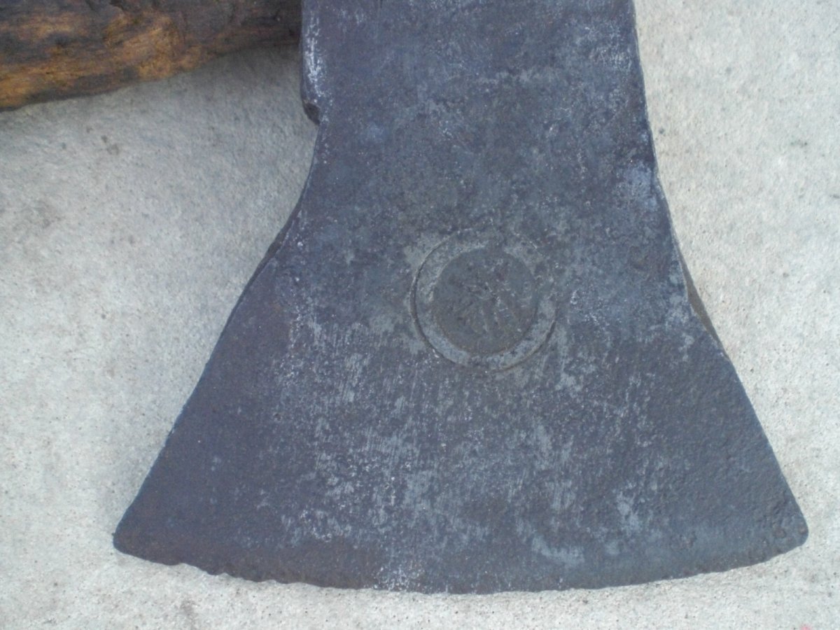 Спасибо за предложение. Я выше писал что перевернул около 400 ст. Подобного клейма не нашел.Хотя по форме топора и топорища схож с немцем. Потому и обратился за помощью. Яне могу понять что за первая буква? вторая К и третья, толи А, толи такая 4.