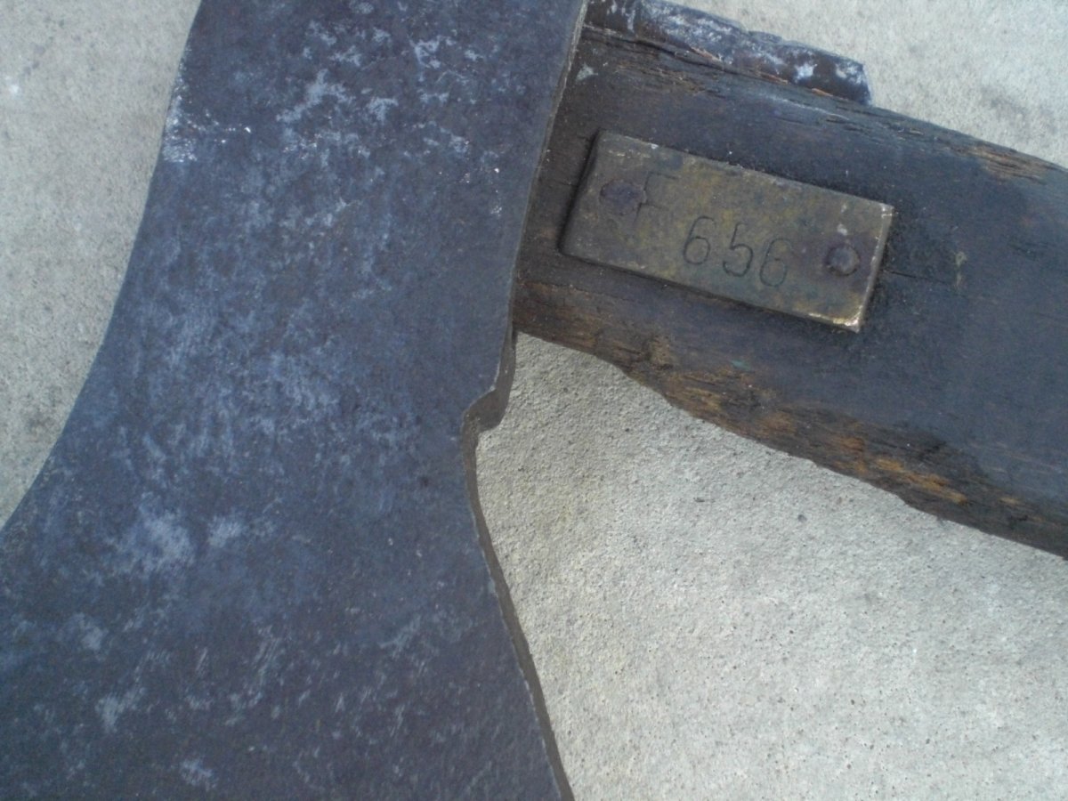 К сожалению. Может это типа прибалты? Да и вообще; я впервые столкнулся с тем,что оказывается были инв. бирки на топорищах ( латунные) обычно выжигали номер или клеймо. Я клеймо, зрительно, помню что видел такое. Но не топоре, это точно.