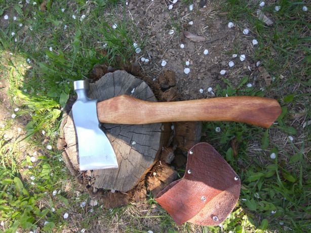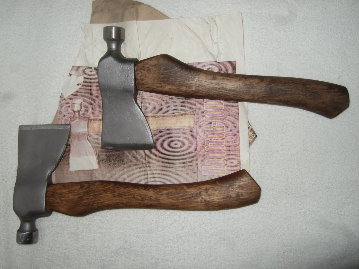 № 81 и 82 - по 300 грн.Проданы .Клинки практически новые,не уточены.Ручка (новодел,более удобная для работы топором)- сухой граб,морилка,два слоя масло льона,слой воска.Клин из дерева.Чехол плотная кожа,можно работать молотком не снимая чехол-70 грн.