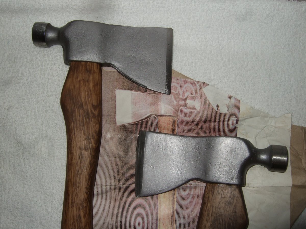 № 83 и 84 Проданы - по 350 грн .Клинки практически новые,не уточены.Ручка (новодел,более удобная для работы топором)- сухой граб,морилка,два слоя масло льона,слой воска.Клин из дерева.Чехол кожа в комплекте . 0661687843