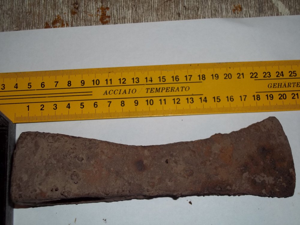 Найден в лесу , близ скифской поселухи , район находки Сумская область , вес 1100 гр. , длина 19.5 см. ширина острия топора 6 см. Заранее благодарен.