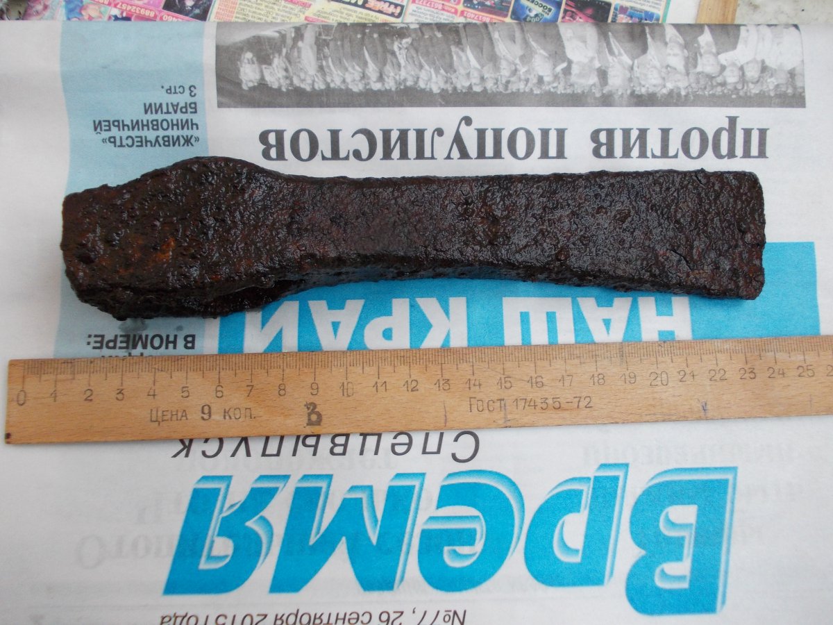 3. Козацька сокира викопана в лісі біля річки. Вага 1,300 кг.