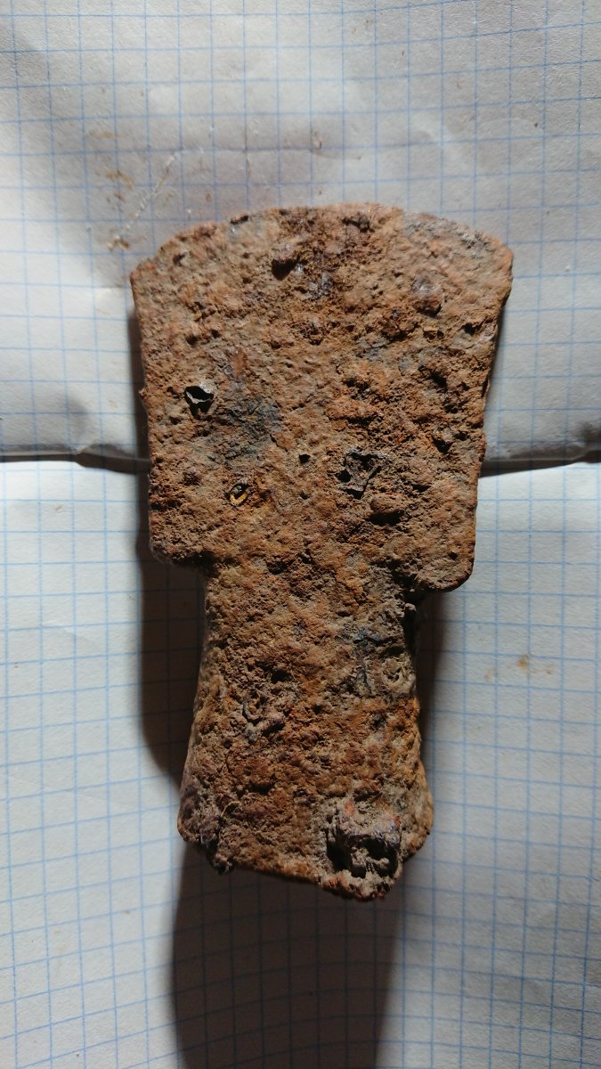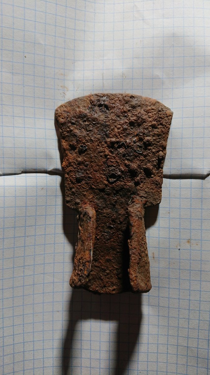 Доброй ночи. Сегодня попался такой топор при поиске новых мест. Найдено в глубине леса Харьковской обл. километров 12 от Северского Донца. Вес 1,578 гр. Сопутка на фото. Думаю рабочий скиф.Интересно какого времени колокольчик.