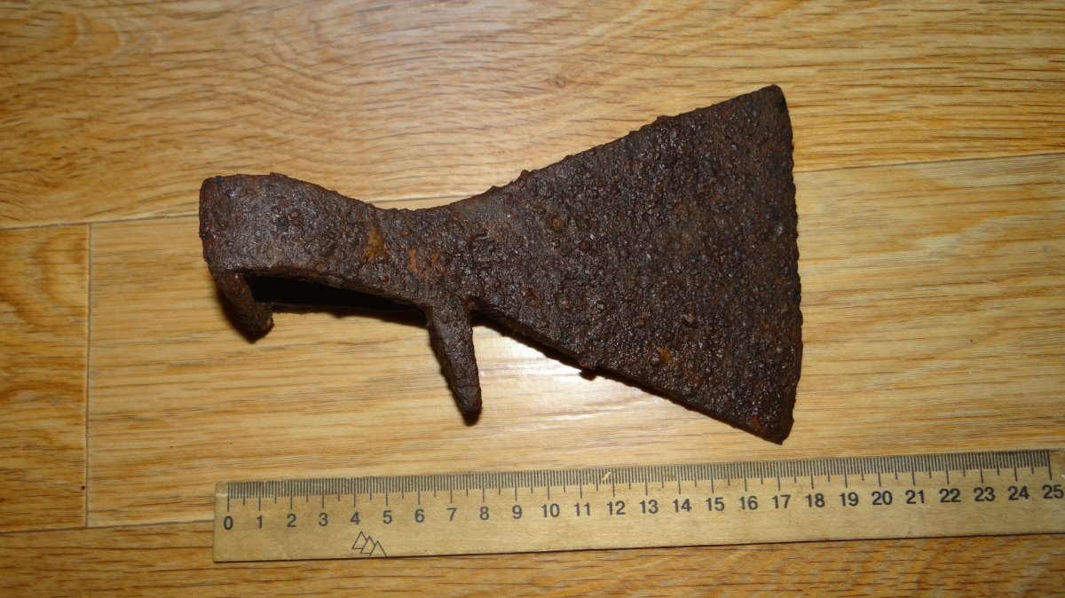 Приветствую камрады, просьба подсказать что за топор, впервые такой нахожу,вроде бы даже клейма на последних двух фото просматриваются, а может и кажеться.