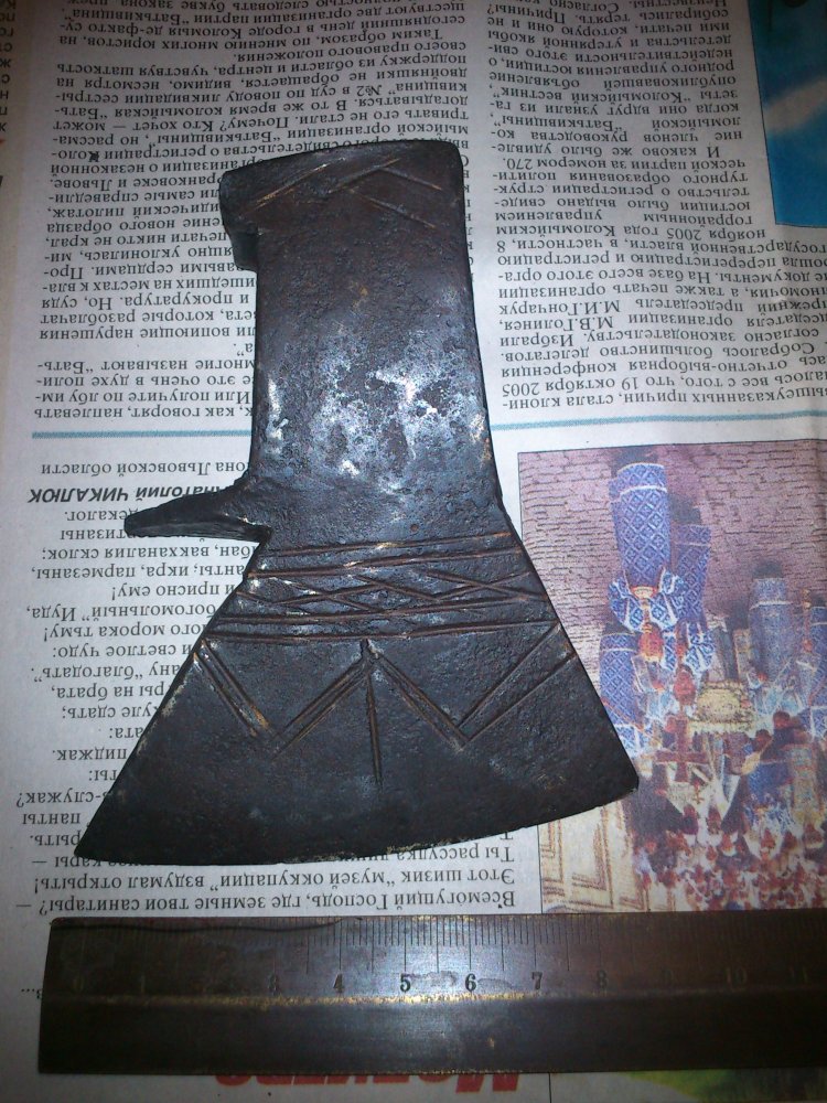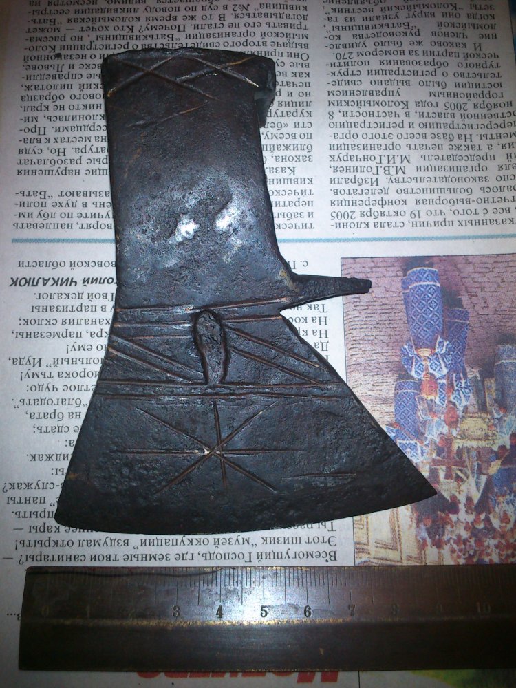 Ещё один топор с тех же краёв (Черкасская обл.). Думаю о болгарке и рукоблудии речь идти не должна... Вес: 1,355 гр.