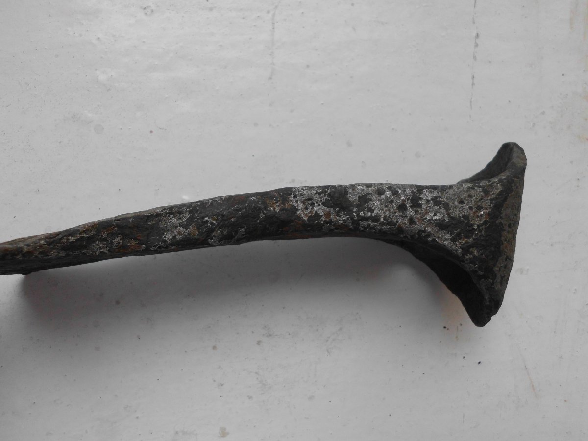 И еще прошу высказаться по этому необычному топорику.Каких времен, чей или для чего служил.Найден при копания колодца на глубине полтора метра!Длина 18.5, ширина лезвия-7 см.