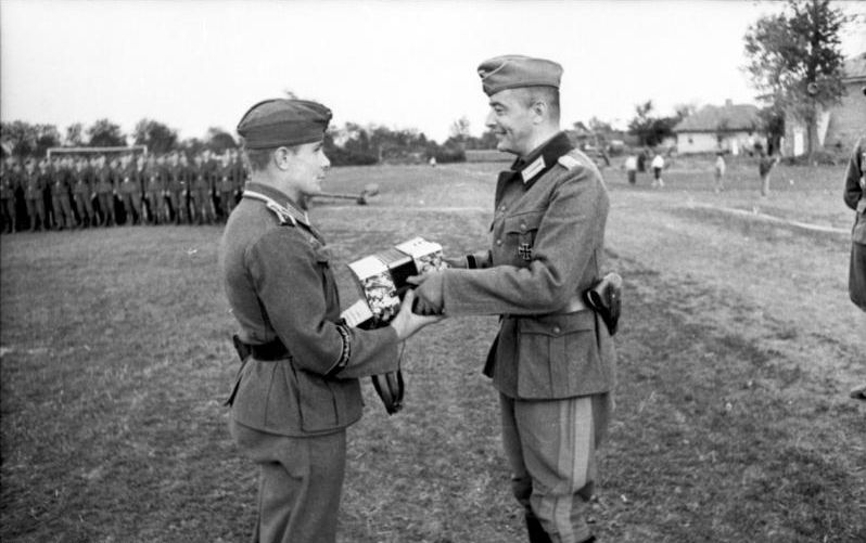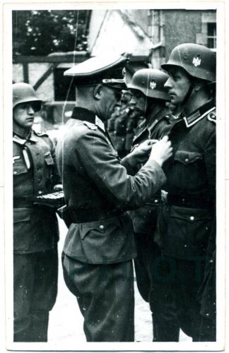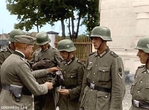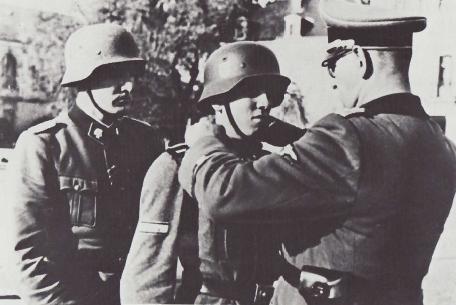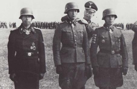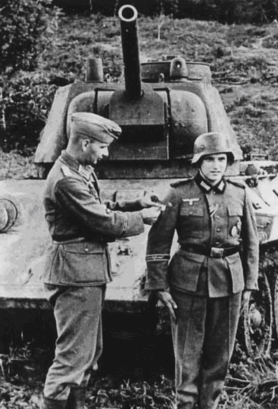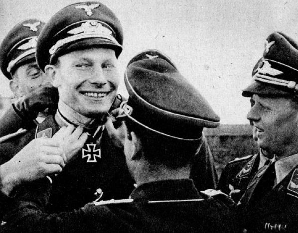 22 июля 1942 г. в сражении у Эль-Аламейна расчет ефрейтора Гюнтера Хальма из 104-го гренадерского полка выстрелами из PaK-36(r) в течение нескольких минут уничтожил девять английских танков. Ему было 19 лет. В 1942 году он был наводчиком в противотанковом полку 104-го панцергренадерского полка 21-ой танковой дивизии. Этот взвод имел на вооружении две трофейные советские противотанковые пушки Pak 36 (r) и находился на оборонительной позиции, которая проходила вдоль 300-метрового высохшего ручья. Первым орудием командовал унтер-офицер Ябек, наводчиком был Хальм. 22 июля после артподготовки британская 23-я бронетанковая бригада пошла в атаку. Пыль и дым от взрывов затруднял обнаружение танков. Поэтому расчет заметил танки "Валентайн" из 40-го Королевского танкового полка только тогда, когда они были на расстоянии не более 100 метров. В течение нескольких минут 9 из них были подбиты, а еще через несколько остальные 6 были выведены из строя. Во время боя был ранен заряжающий, осколок снаряда также прошел между ног Хальма, не задев его. Английские танки вынуждены были отступить, но продолжали вести огонь, тем самым полностью уничтожив пушку Хальма. На помощь подоспели Pz IV и пикирующие бомбардировщики. 23-я бронетанковая бригада была уничтожена, потеряв 93 из 104 ее танков. Командир полка решил, что за его заслуги Хальм может быть награжден ЖК2 и ЖК1 одновременно, чтобы быть награжденным РК. И как Вы упомянули 29 июля 1942 года Хальм получил награду из рук Роммеля. Он прошел всю войну. Будучи Лейтенатом в 21-ой танковой дивизии, 24 августа 1944 года он попал плен под Фалезом. В 1946 году он был выпущен на свободу и поселился в Бранушвайге, где, в частности, был торговцем углем и т.д, а также был членом местного правительства. На фото - Роммель награждает рыцарским крестом ефрейтора Гюнтера Хальма. Северная Африка, июль 1942
