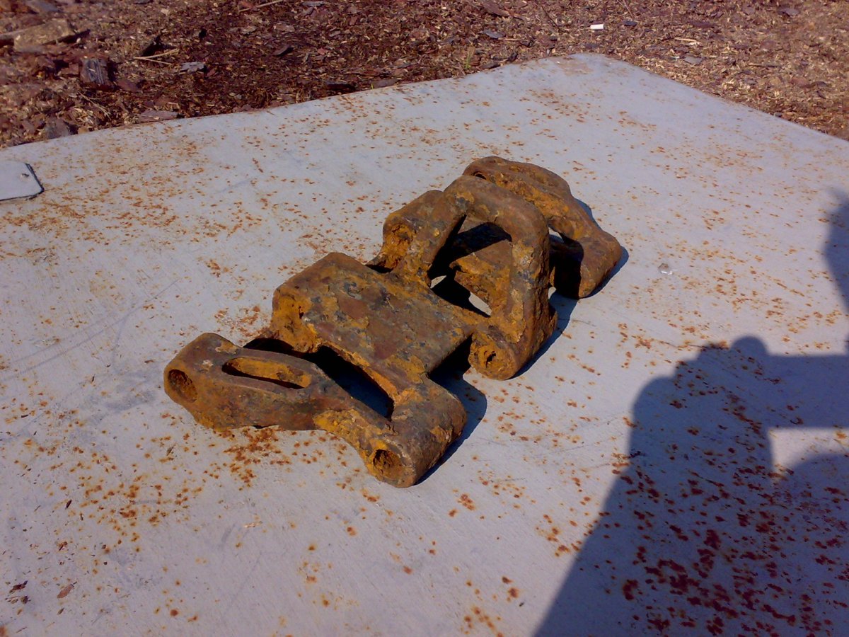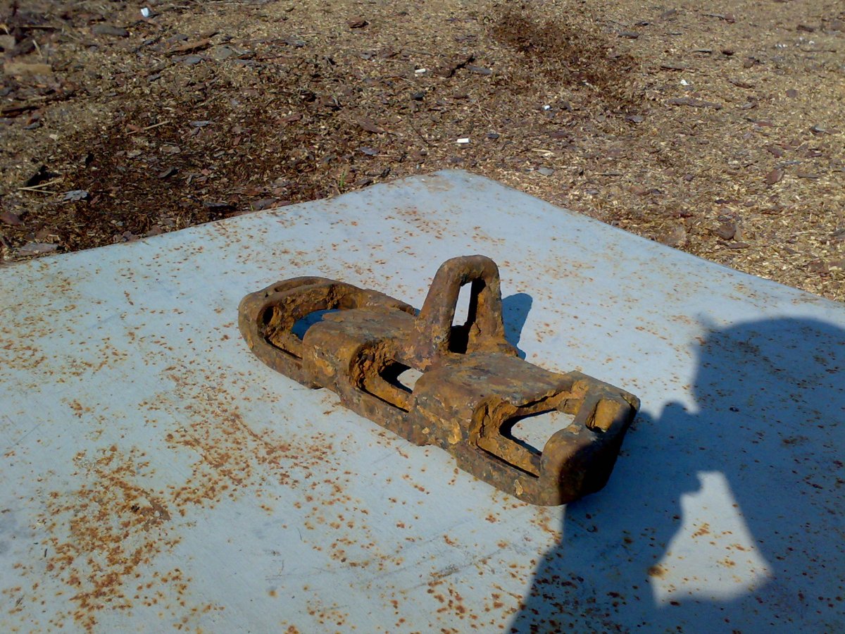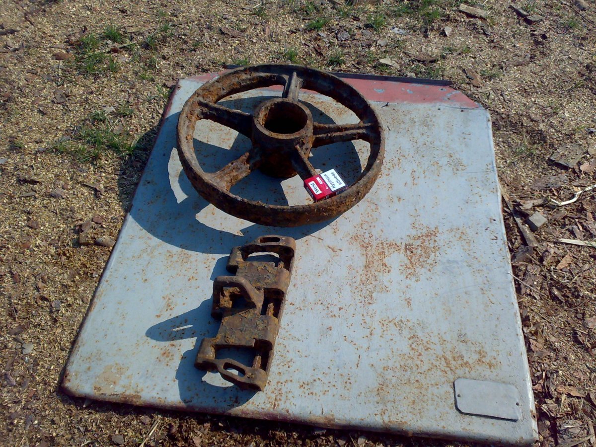 Найдены вот такие трак и колесо. Трак целый, с маркировкой СКС, длина 38см. Колесо тоже целое но непонятно с какой техники. Трак похоже с Т-3. Интересует стоимость трака.