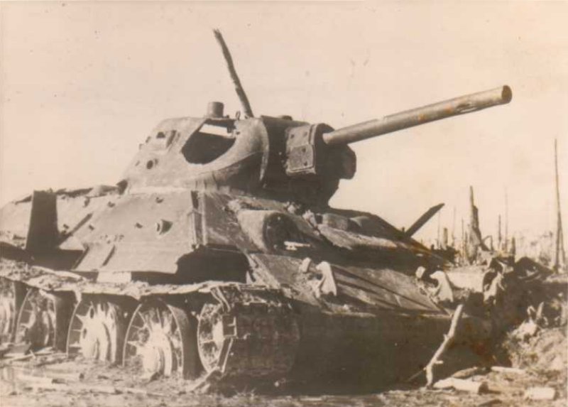 Как-то на досуге мне один музейщик показывал взорванную тридцатьчетвёрку, на Сталинградских катках под Киевом, уже на правом берегу Днепра.