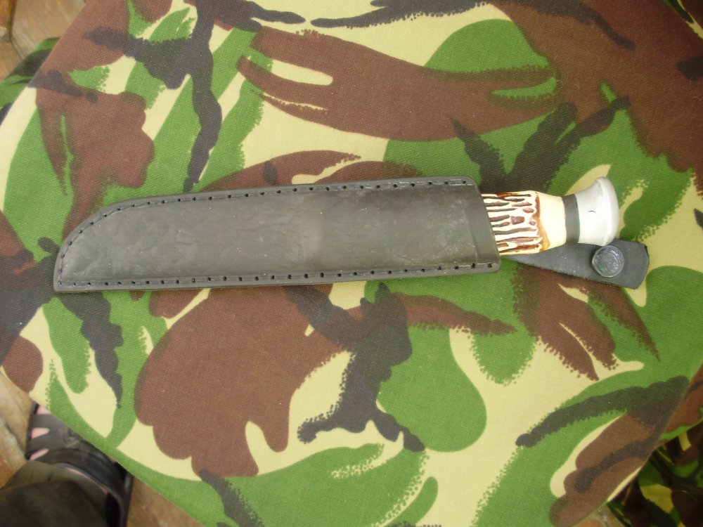 Trmontina Sport немного переделанный,убрана гарда(мешала работе по продуктам),пошиты кожаные ножны на свободном подвесе(кожа-3,5мм),фиксация в нохнах очень надежная.Цена-200грн.