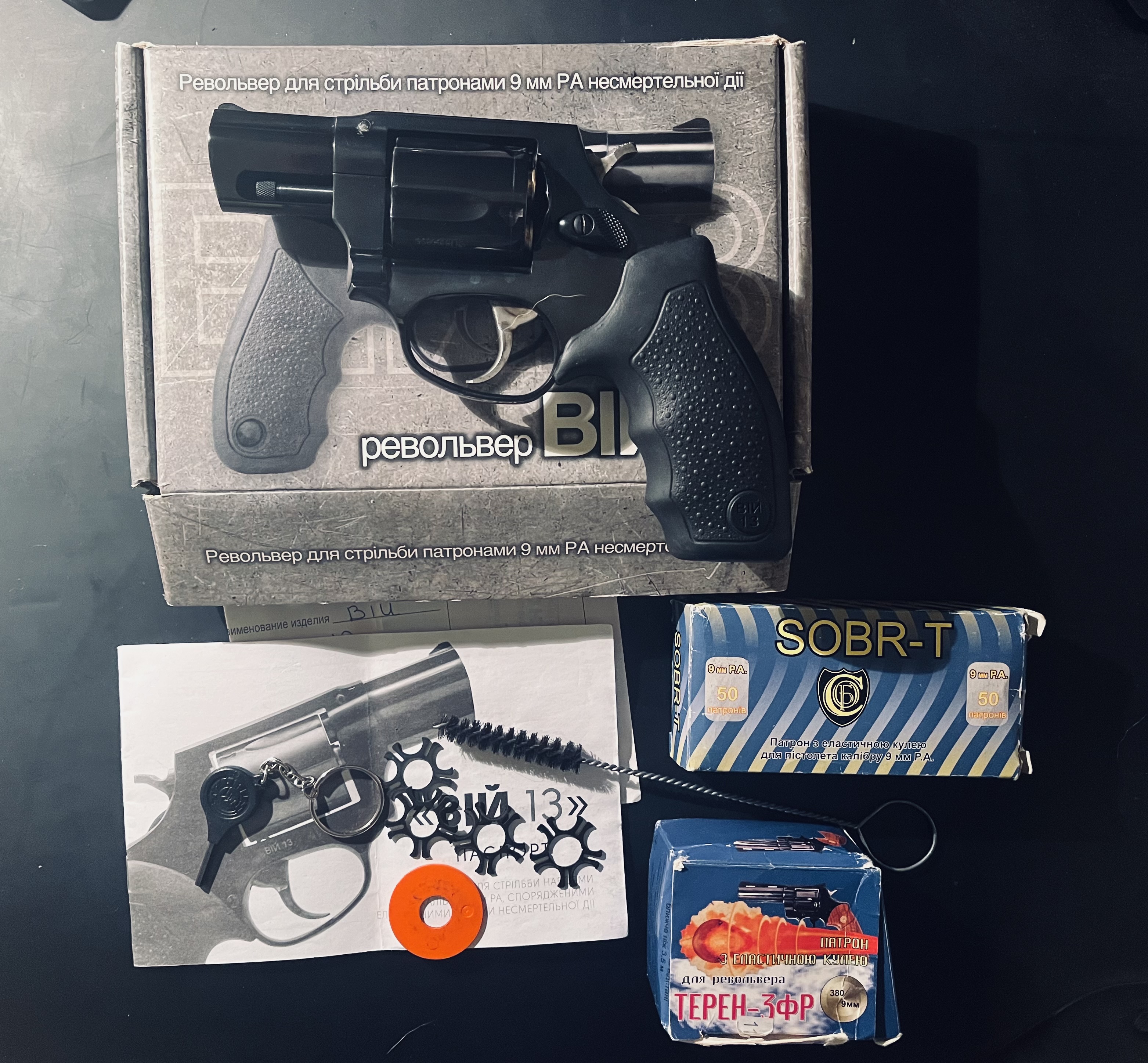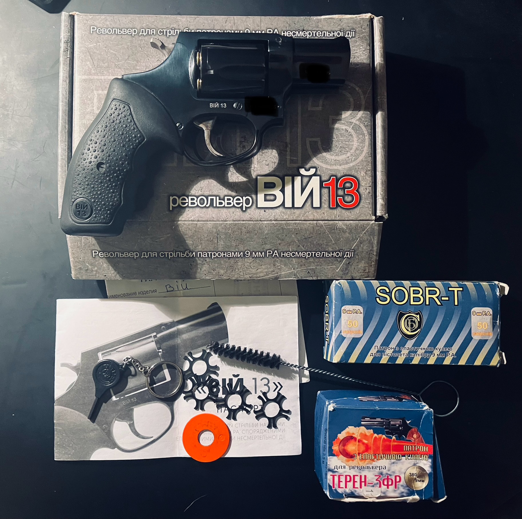 Продам травматичний револьвер Вій 13. Купувався новим у 2016 році. Стан нового, стріляв тільки на продовженні дозволу в НДКЦ. В комплекті заводська коробка, паспорт, гарантійка з магазину, мункліпи, ключ, кобура Алайн та трохи розхідників, звичайних та револьверних. Внесений в ЄРЗ, чекати не потрібно. 30.000 грн. Київ
