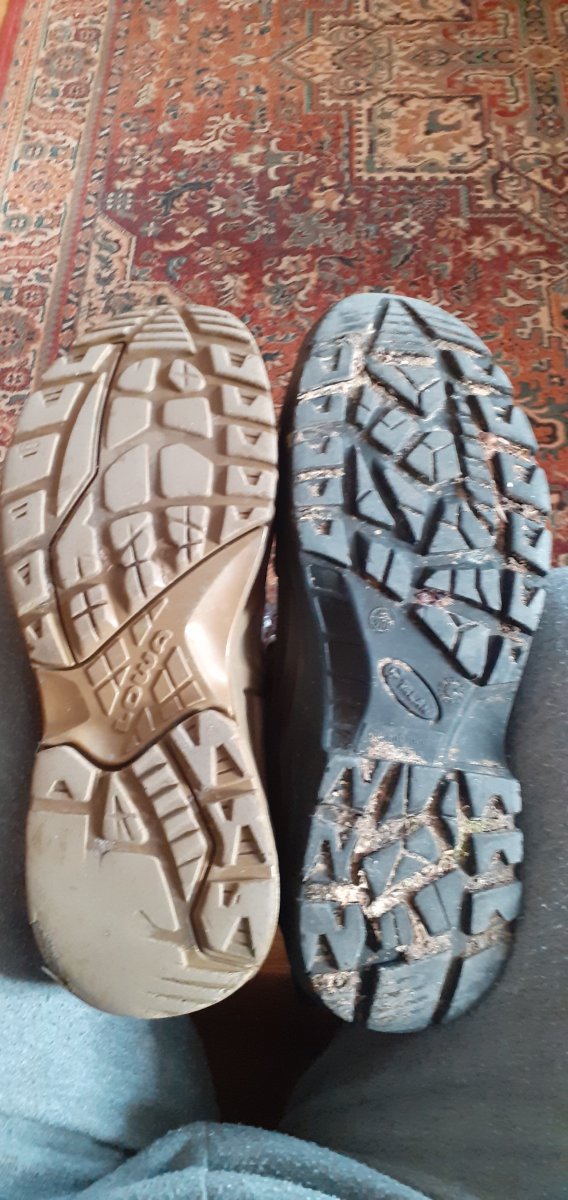 Вітаю товариство. Уважноь прочитав усі пости. Кожен з нас має власну думку на тему різних фірм та черевиків. Можу тільки на власному досвіді сказати що волію трекінги від Талана ніж від Лови. Від 2016 року ходжу у трекінгах Бриз - осінь, зима, літо - місто, ліс, гори - жодних проблем навіть шнурків не міняв. У 2017 купив Зефіри - підошви вже нема, шнурки міняв два рази Фото для порівняння - Зефіри на рік молодші.