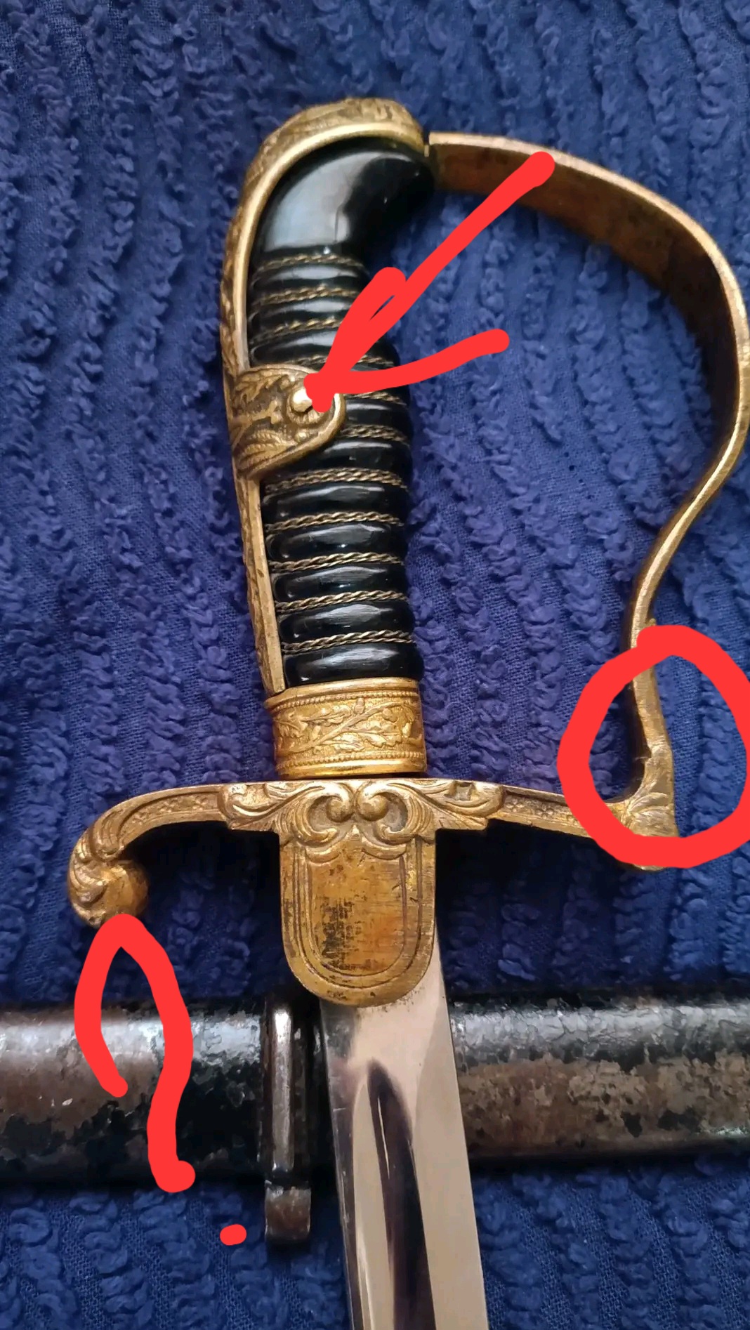 Сильно деформований ефес. Відчуття, що він переклепаний, можете ще запросити світлини з розклепом на верхівці. Там де я коло обвів я один там бачу тріщину? Як написали вище пошкоджене вістря клинка. Відсутнє кільцє не ножнах, теж не добавляє в ціні. Можливо я погано орієнтуюсь в цінах останнім часом, але не розумію за що тут і 4 сотні. Їх в колекційному стані хватеє.