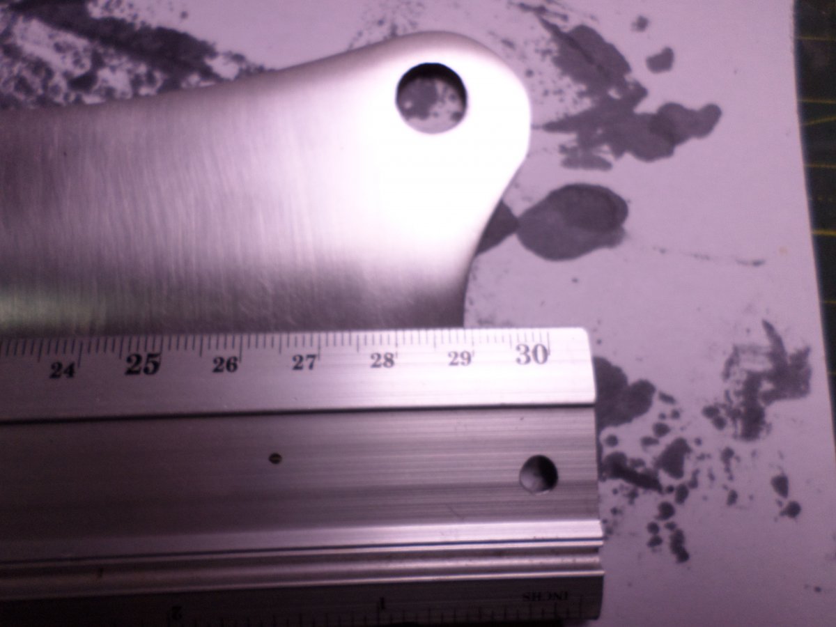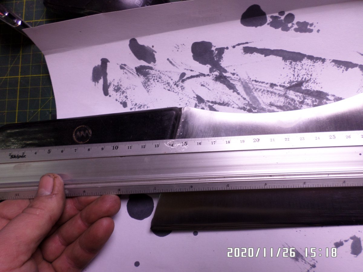 Лот#2 Представитель страны которой уже нет, рукоятка пластик, на лезвии что-то углеродистое, и неплохо каленое, довольно толстый в обухе и самый тяжолый из трёх, рубить будет аки зверь. Также сатин и заточка с выпуклой линзой. Цена продан