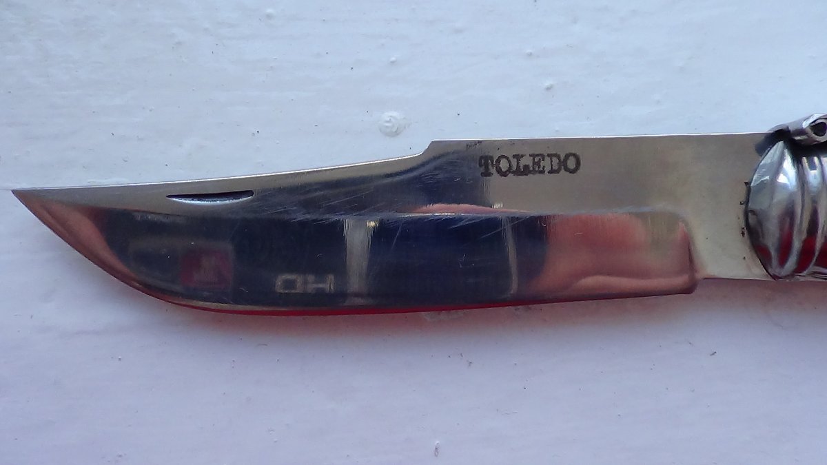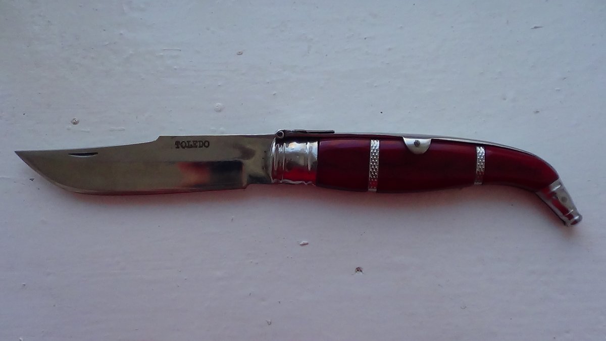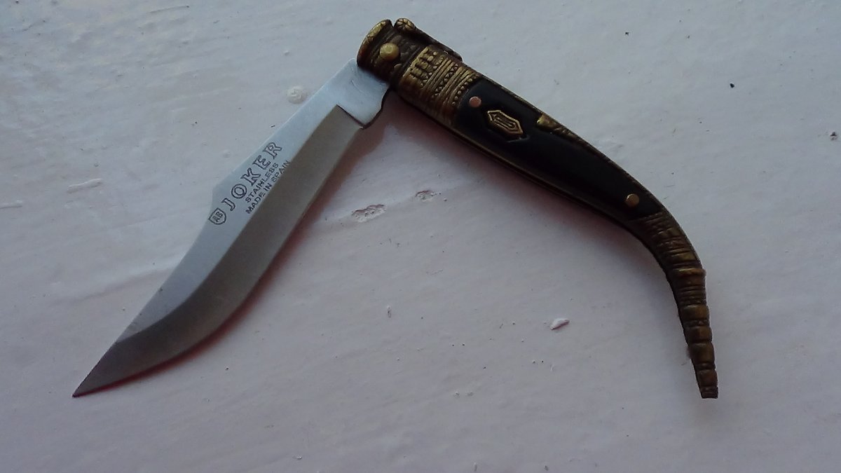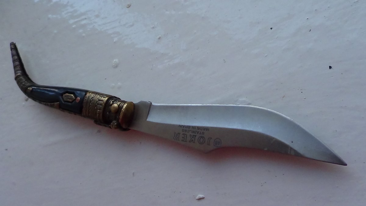 Три навахи. 1. Toledo. Накладки-пластик.Общая длина-25см, клинок-11,5см Цена-1350грн. 2.Joker. Общая длина-18см, клинок-8,5см Цена-750грн. 3. Рукоять-рог. Общая длина-24см, клинок-11см Цена-2650грн.
