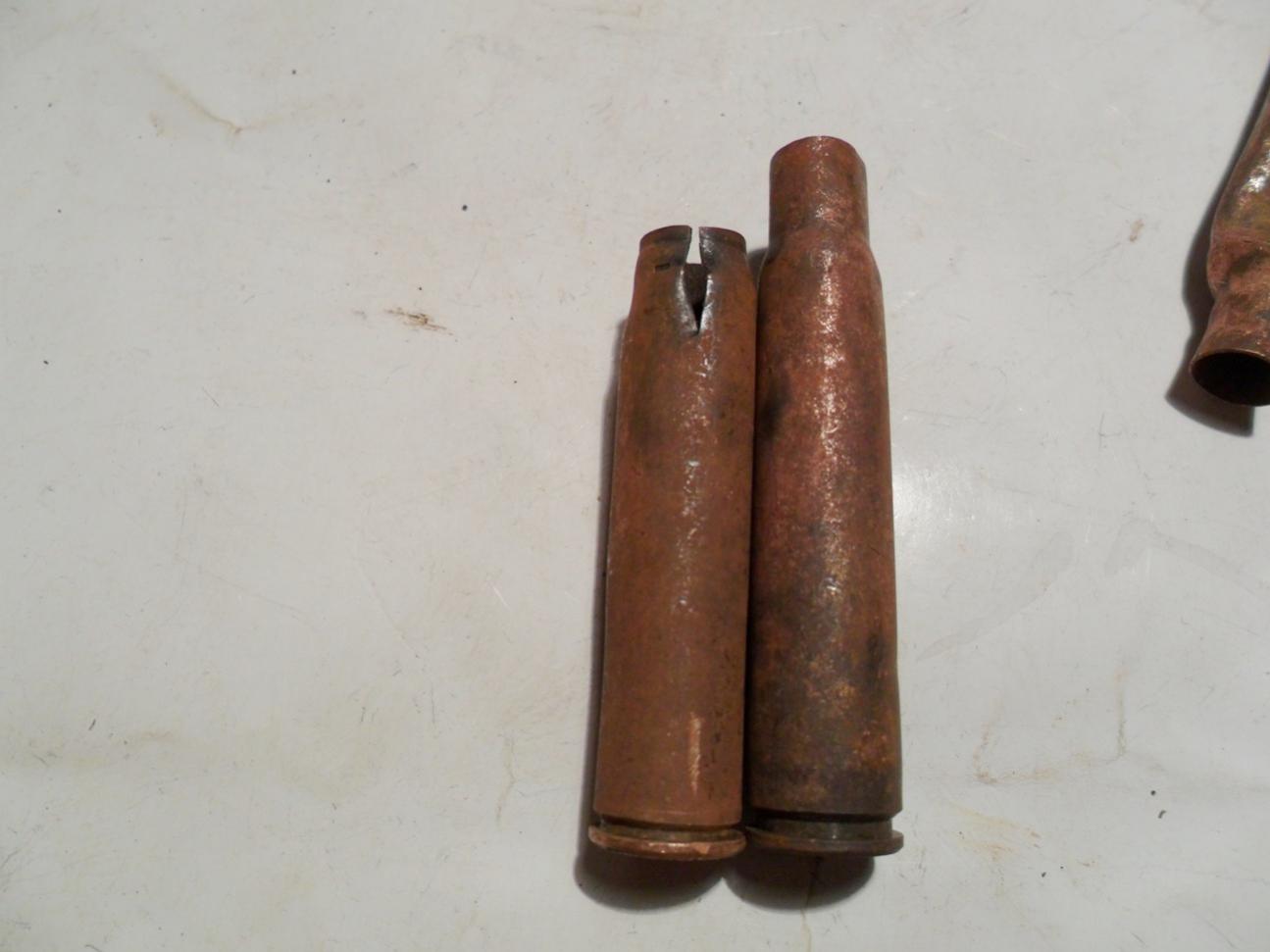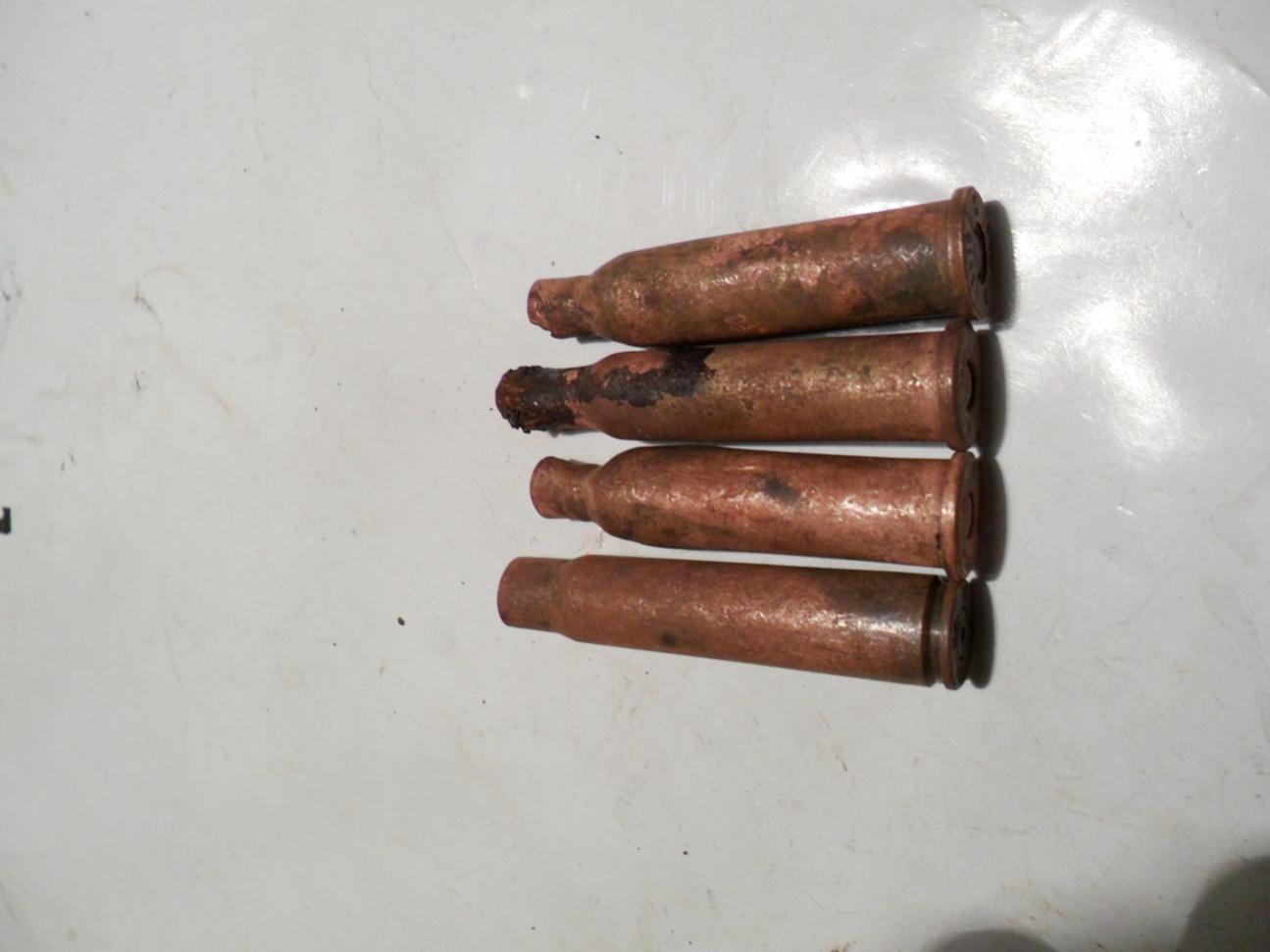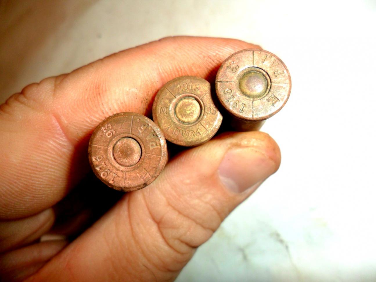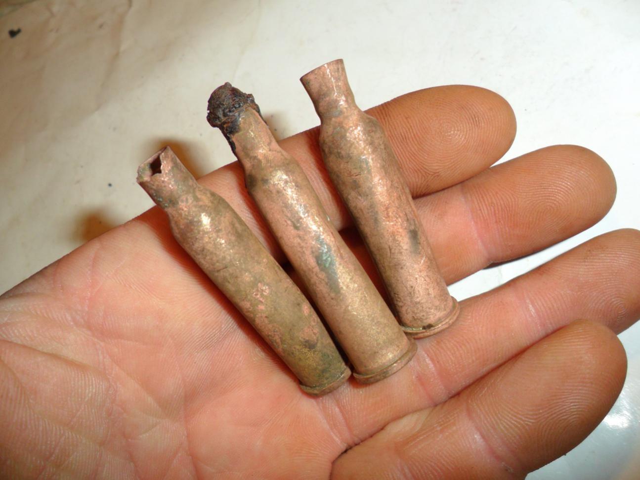 и еще три гильзы, никогда прежде не встречал, на одной сохранилась пуля, такая и была или отгнила?