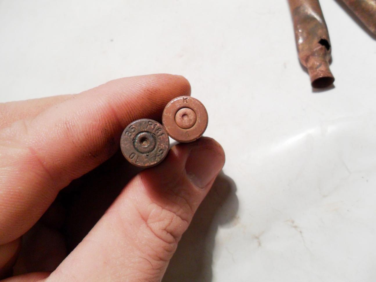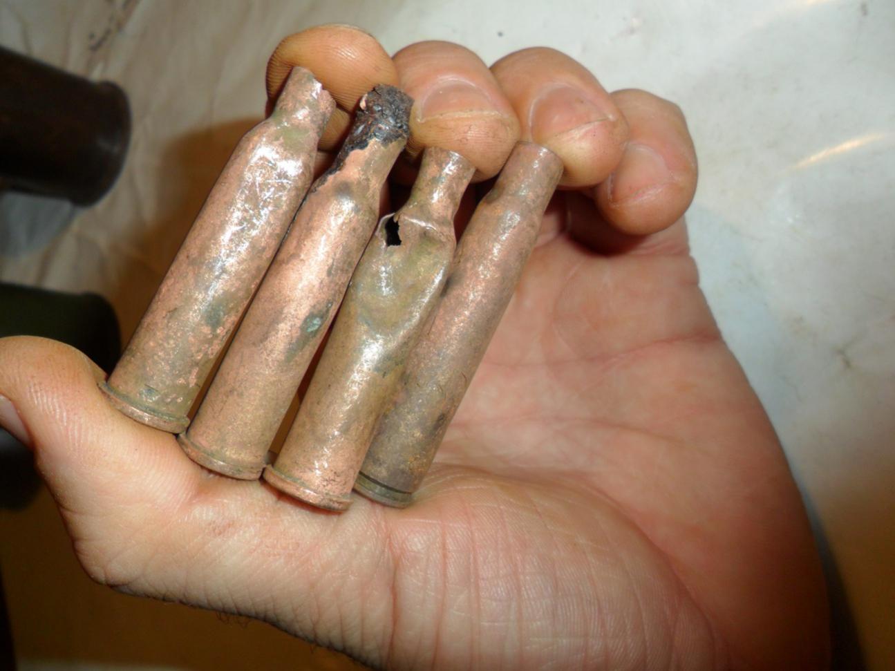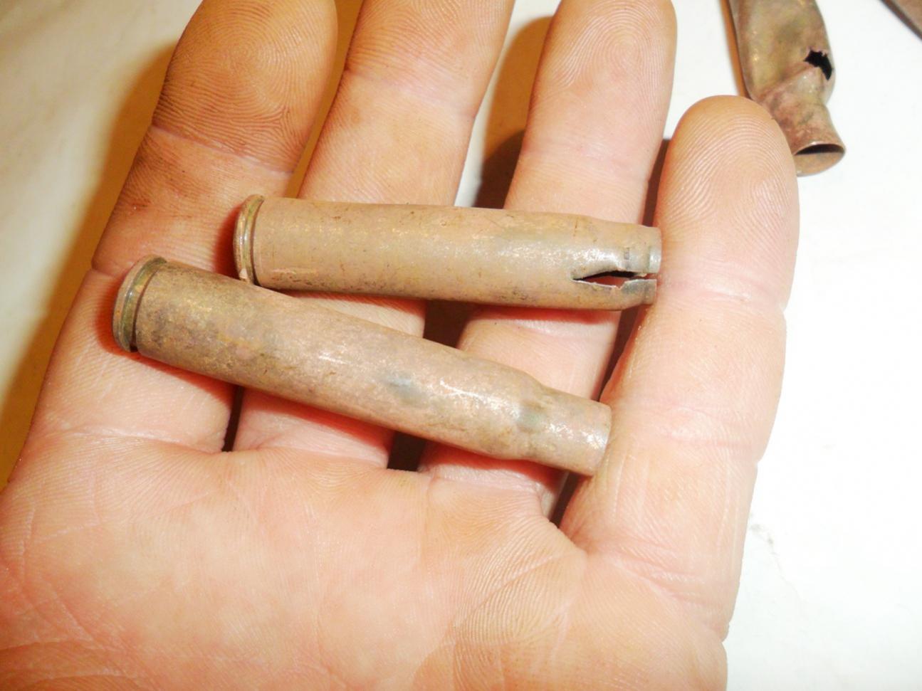 Кстати по гильзе, что с остатками пули - она пустая, видимо еще в свое время вытрусили порох и вставили пулю назад.