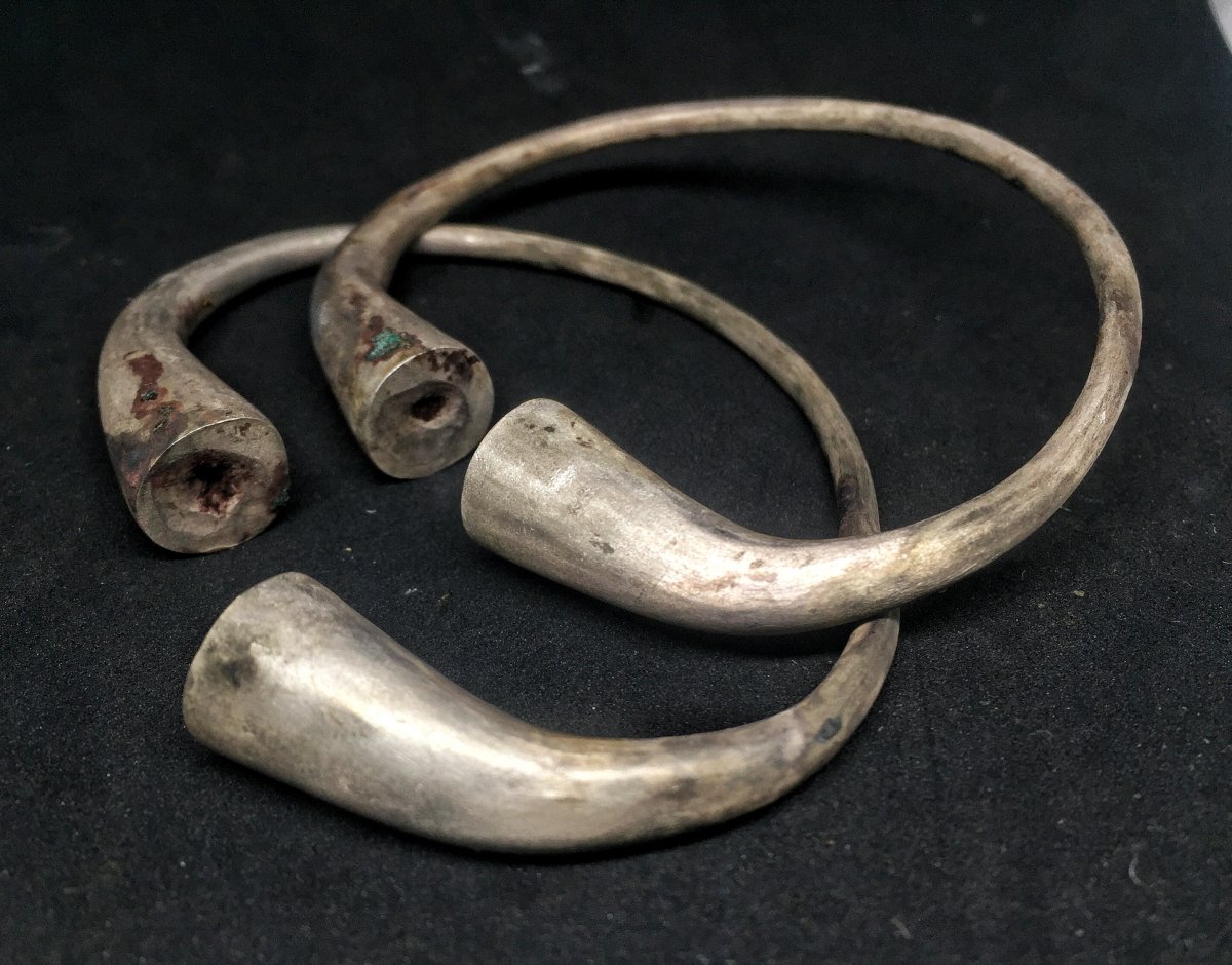 Три серебряных браслета.