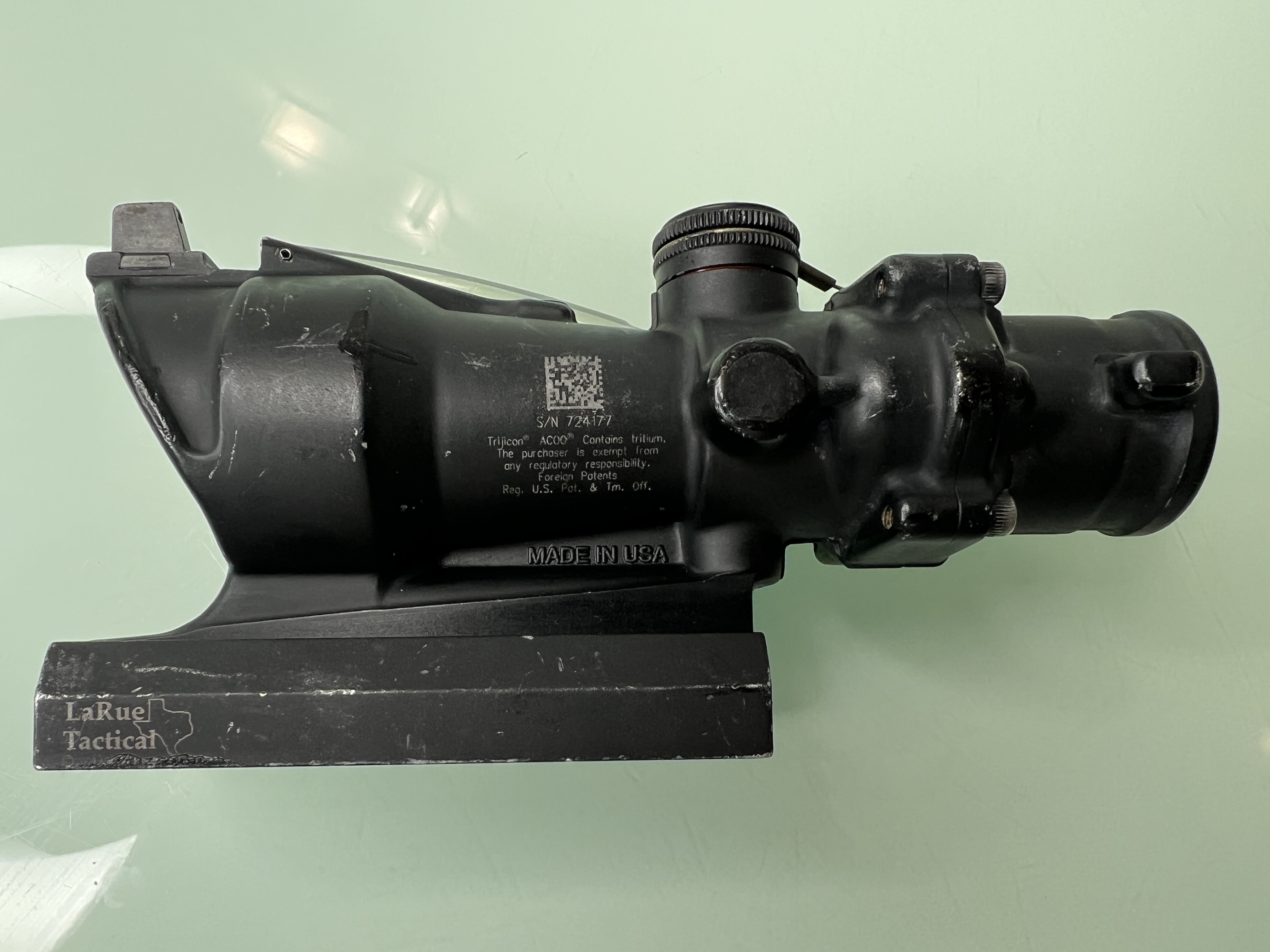 Trijicon ACOG 4*32, USA, оригинал, лучший коллиматор. Красный шеврон, тритий светится, все полностью исправно, оптика в хорошем, состоянии, водонепроницаемый, сетка под 223. В комплекте быстросъемное крепление LaRue Tactical ACOG Mount QD. Продажа - 1000 USD, Обмен на загончик Nightforce или Vortex Razor