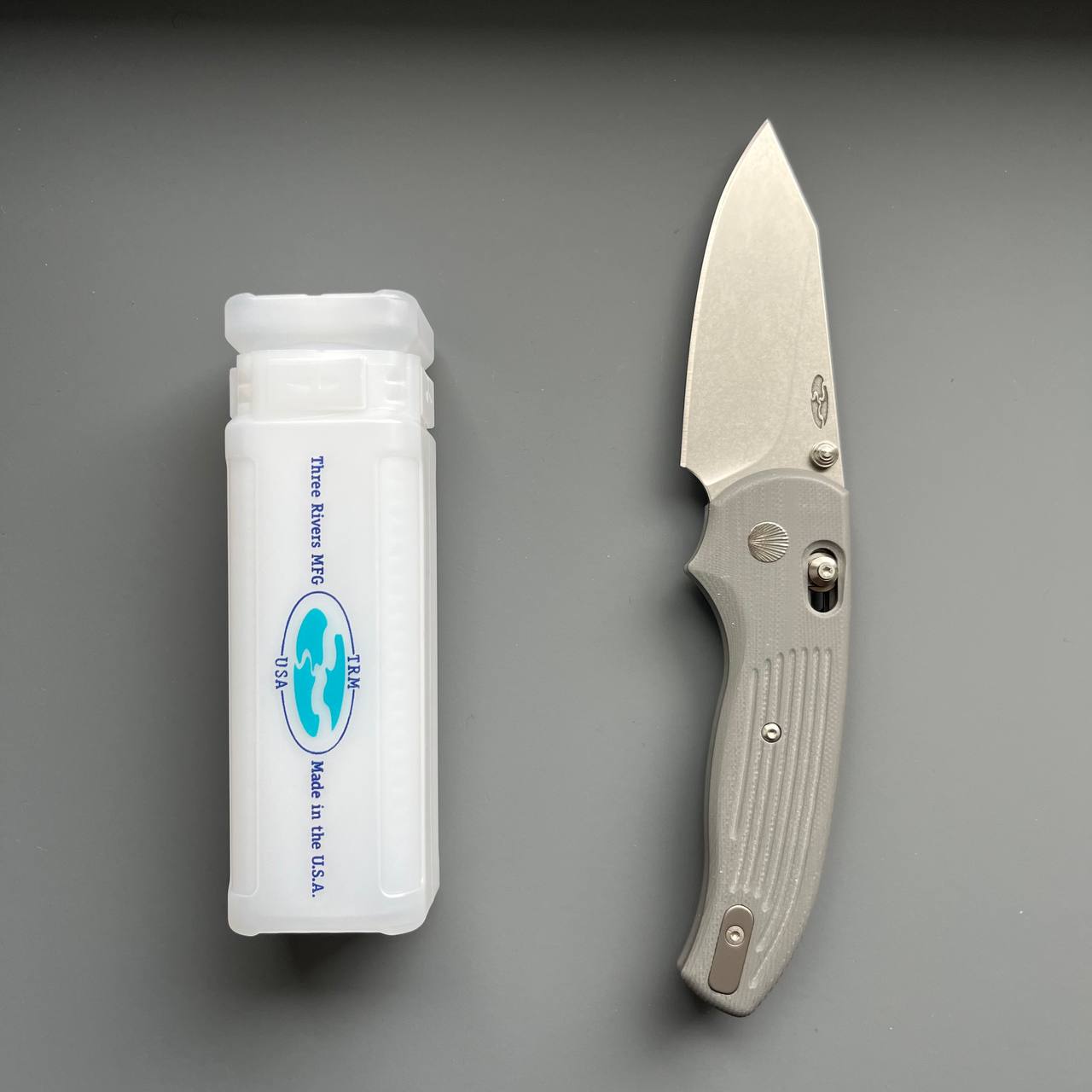 TRM Shadow Американський бренд, невеликий сімейна мануфактура, яка виготовляє ножі в США невеликими партіями. В лінійці декілька моделей: Atom, Neutron 2, Shadow та Nerd Сталі 20CV та MagnaCut. Заадяки філігранній обробці на ЧПУ їхні накладки з G10, мікарти, fatcarbonʼу та титану мають фантастичний вигляд. Ножі створені для різу - про це свідчить геометрія, товщина клинка та зведення. Якість виконання фантастична, з коробки ідеальна механіка (ніж на шайбах) - Загальна довжина 197 мм - Довжина клинка 82 мм - Товщина в обусі 2,3 мм - Сталь CPM 20CV - Матеріал руків'я G-10 Grey - Вага 113 гр. - Виготовлено в США Ціна ⭐️12000₴⭐️ за новий ніж