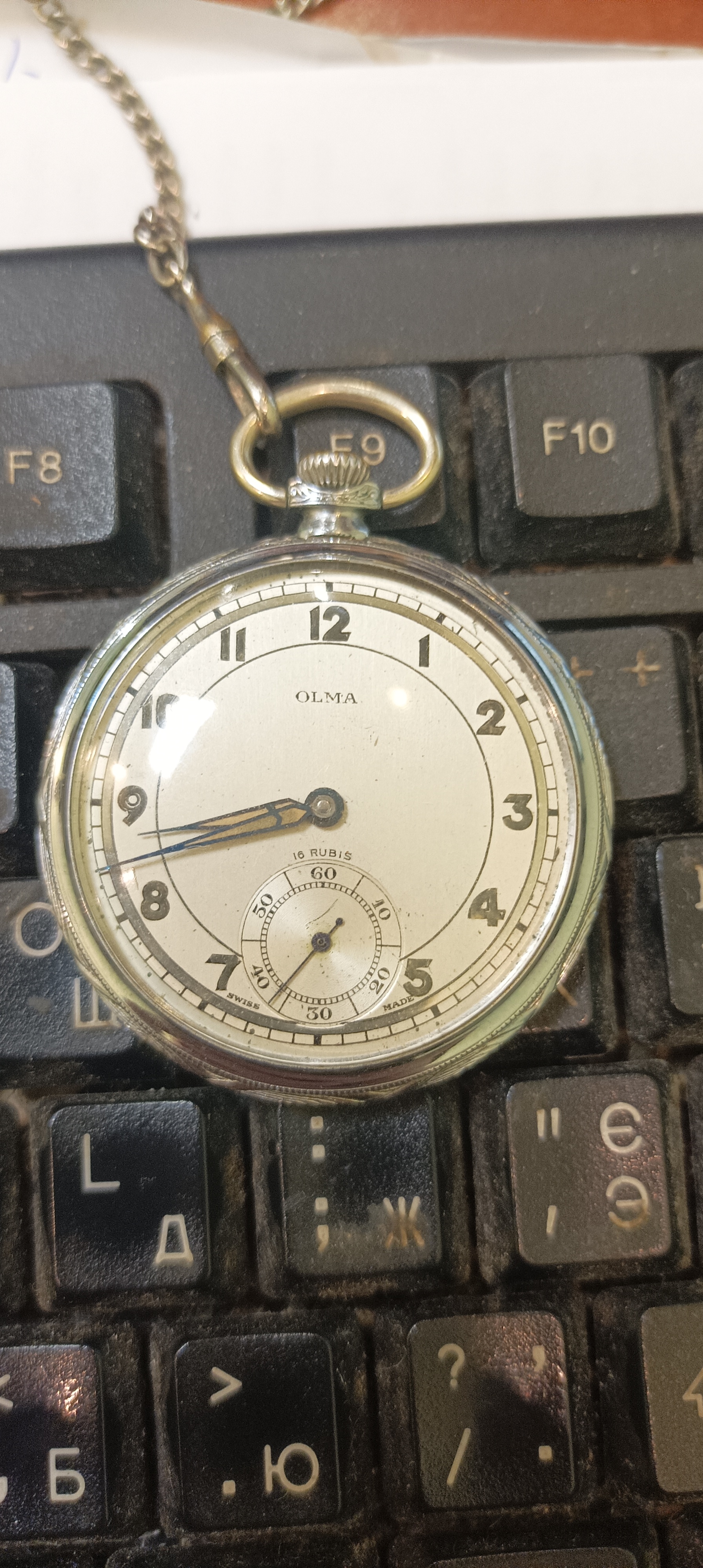 Вітаю друзі. Цікавить скільки може коштувати у такому стані, і що це за звір взагалі. Заводна пружина під заміну, стрілки переволяться. баланс робочій, на ланцюжку є клеймо. Годиник знайомго, дістався у спадок від діда, дід приніс з війни(так мені розповіли)
