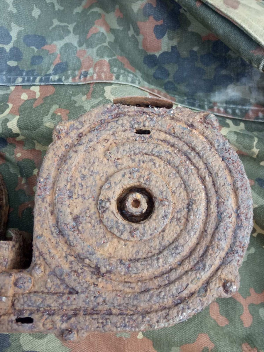 От пулемета МГ - 15 также подходит на МГ 34 с спецыальной верхней крышкой подачи . Видно отрезаны болгаркой две боковинки .