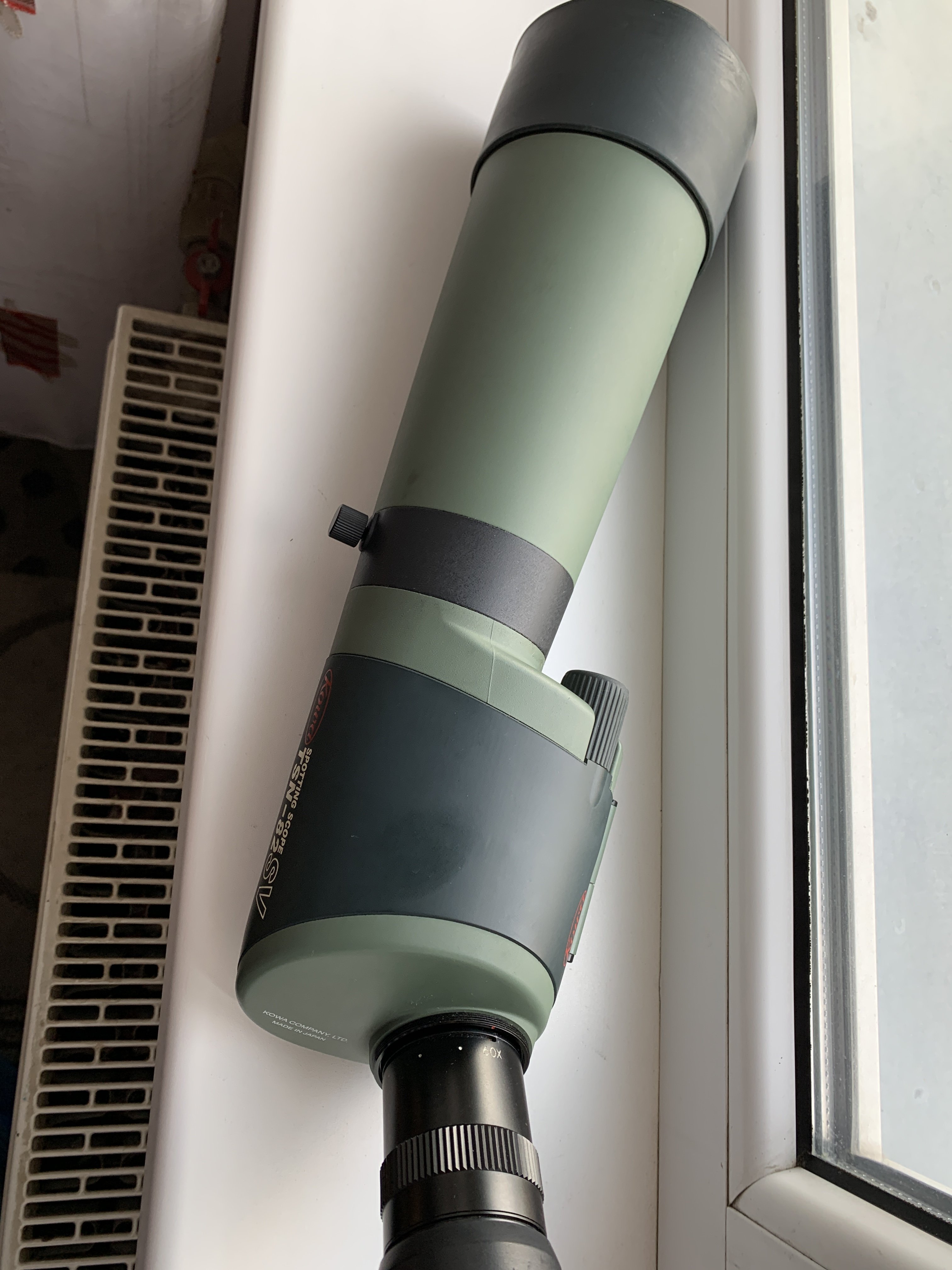 Зрительная труба KOWA TSN-82 SV Made in Japan Состояние - имеются следы использования. Оптика чистая без царапин.. Поле зрения - 17м-33м на 1000м Диаметр объектива - 82мм Кратность - х20 - х60 Вес - 1590 грамм Сменный окуляр В комплекте чехол Картинка четкая и светлая.. 500 долл О95-Зб8-7919.