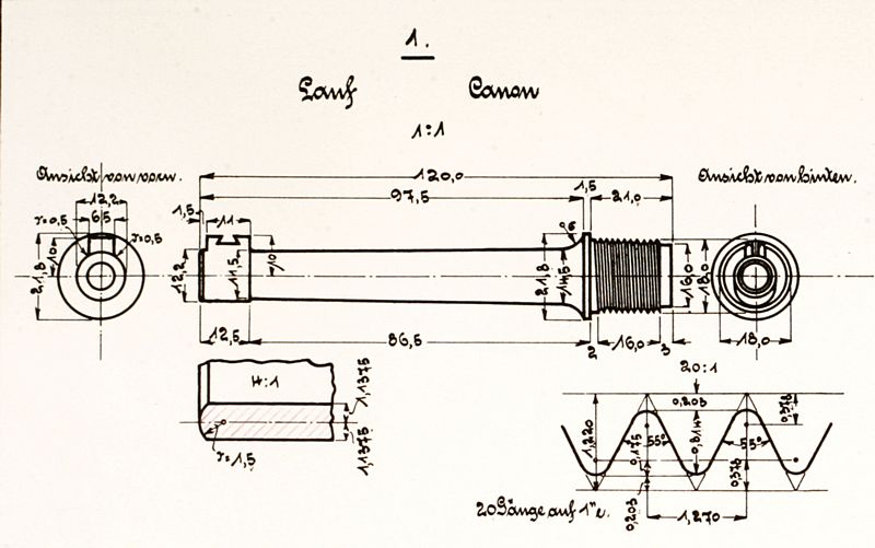Приветствую, Андрей. Выскажу свое мнение по Вашему предмету. Данная трубка (бланк, заготовка) похожая на ствол Парабеллум, по сути такой и является – не сформированы патронник, мушка. Кроме того, мне видится здесь новодел, но сборной конструкции – часть ствола с резьбой взята с действующего оригинального образца (об этом свидетельствует остаток проточки под зуб выбрасывателя, показал на фото) и установлена как муфта поверх бланка. Возможно, это сделано для того, что резьба в оригинале является особой – дюймой Витворовской (шаг 1,27 мм т.е. 1/20 дюйма, угол 55 градусов, см. чертеж), аналогов в метрике нет, как и оригинальных инструментов для нарезки. Далее, самое сложное и непонятное – определиться с принадлежностью, и возможным применением. Если брать ее как вариант под СХП – нужно, устанавливать систему жиклеров, формировать патронник, но о нитках нарезов ствола в таком случае можно забыть. Если же рассматривать ее как реплику на макет, то здесь есть исторические нюансы: во-первых, Лю-пистолеты под калибр 7,65 вообще редкость, это старые модели до P.08 (1900, 1906), далее – в них использовался Люгеровский патрон 7,65х21 особой формы, который не взаимозаменяем с другими https://ru.wikipedia.org/wiki/7,65_×_21_мм_Парабеллум. Нарезов в столе было 6. Длина ствола должна быть 120мм, а не 100, как в Р.08. – уже историческое не соответствие. Исходя из вышесказанного как-то определиться с ценой весьма проблематично. Безусловно, что-то за него дадут, можно поставить с 1грн, но есть риск продать за бесценок. Здесь думайте сами – случай не ординарный. С ув.
