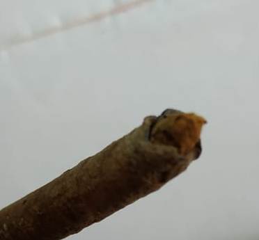 Вже було:Внутри похоже бумага, горит плохенько, коптит и дымно тлеет